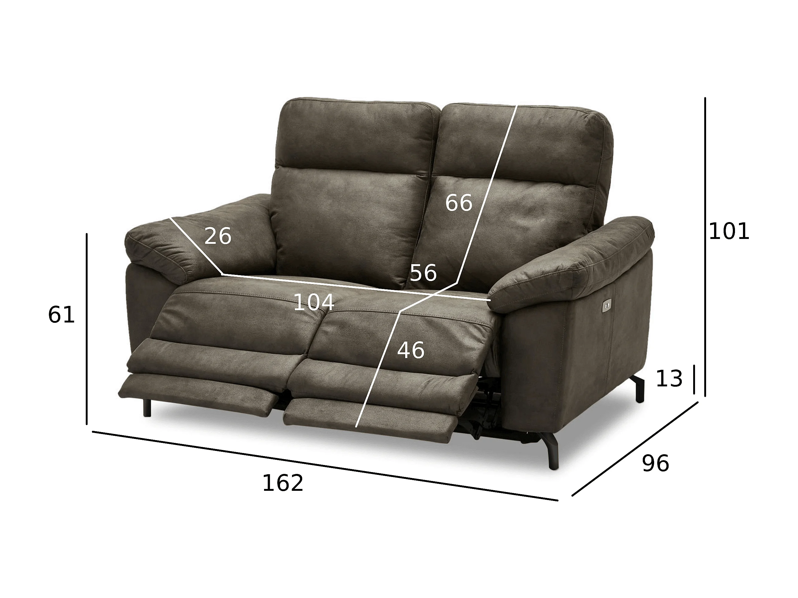 Tweezits elektrische relaxbank Selesta van stof - bruin