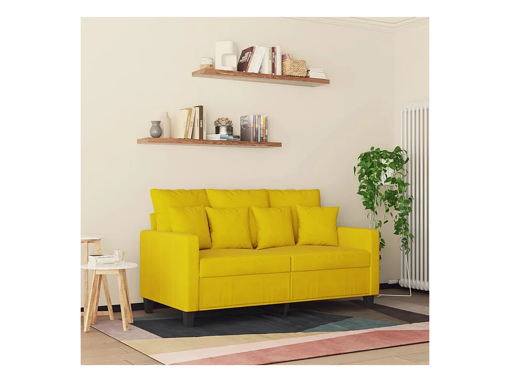 Tweezitsbank met sierkussens 120 cm fluweel geel