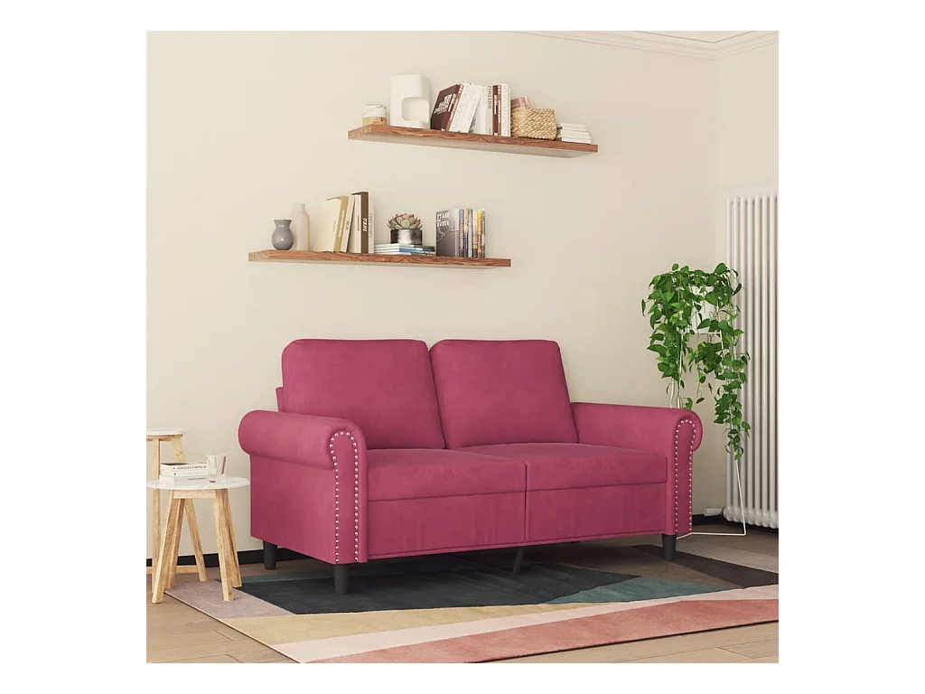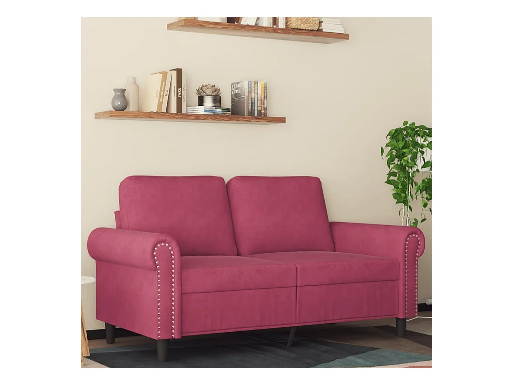 Tweezitsbank met sierkussens 120 cm fluweel wijnrood BE527059