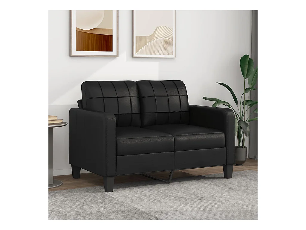 Tweezitsbank met sierkussens 120 cm kunstleer zwart