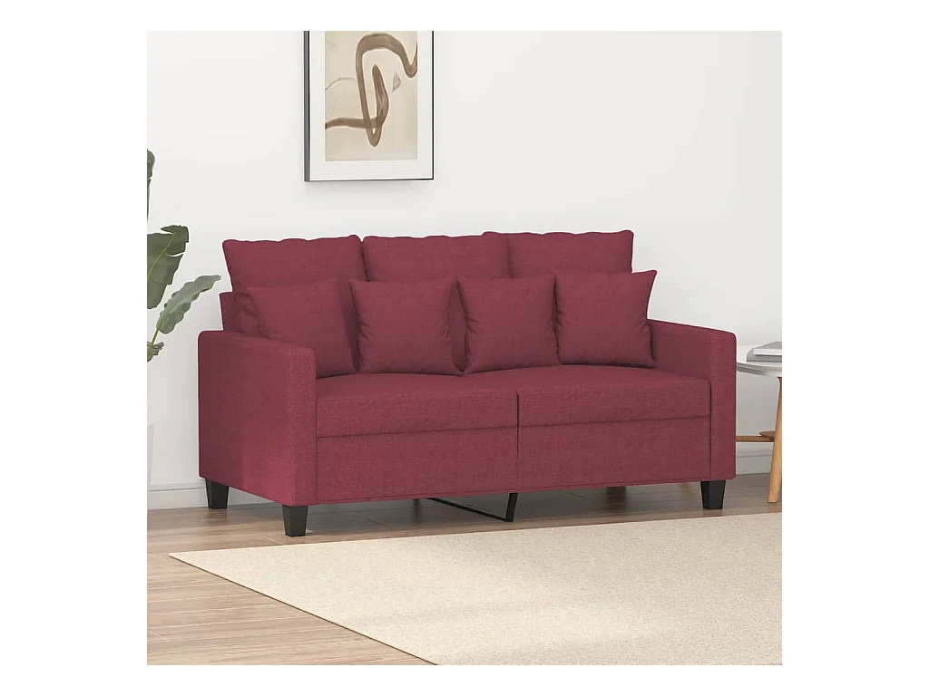 Tweezitsbank met sierkussens 140 cm stof wijnrood