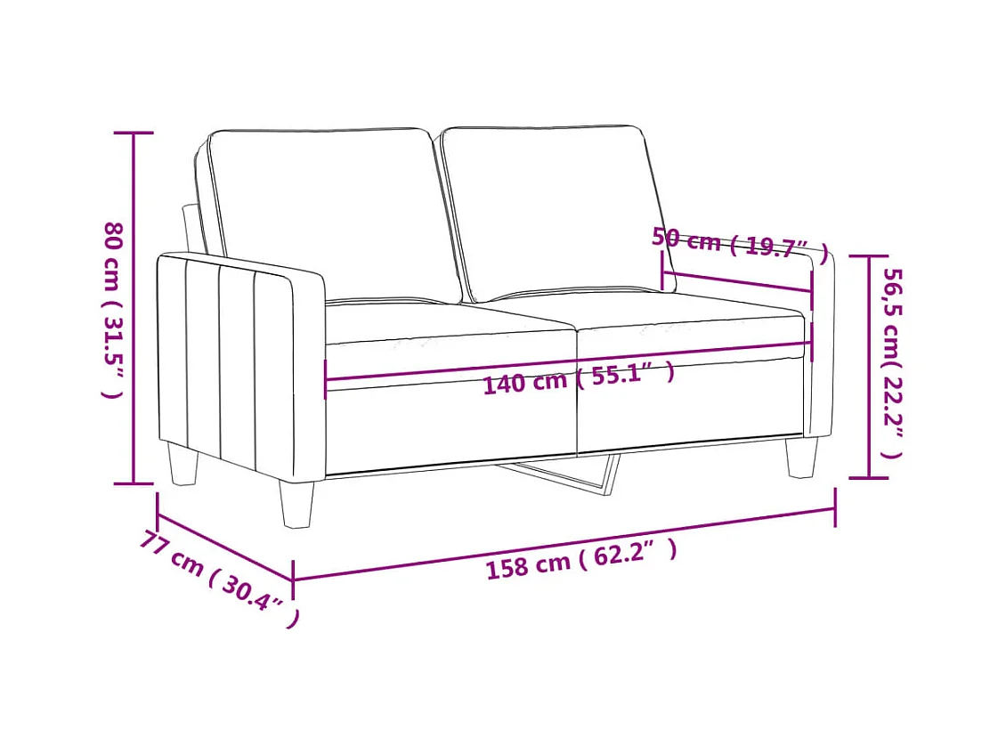 Tweezitsbank 140 cm fluweel crèmekleurig NL380268