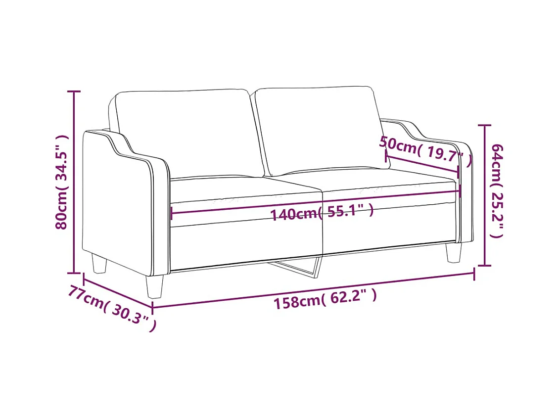 Tweezitsbank 140 cm stof lichtgeel