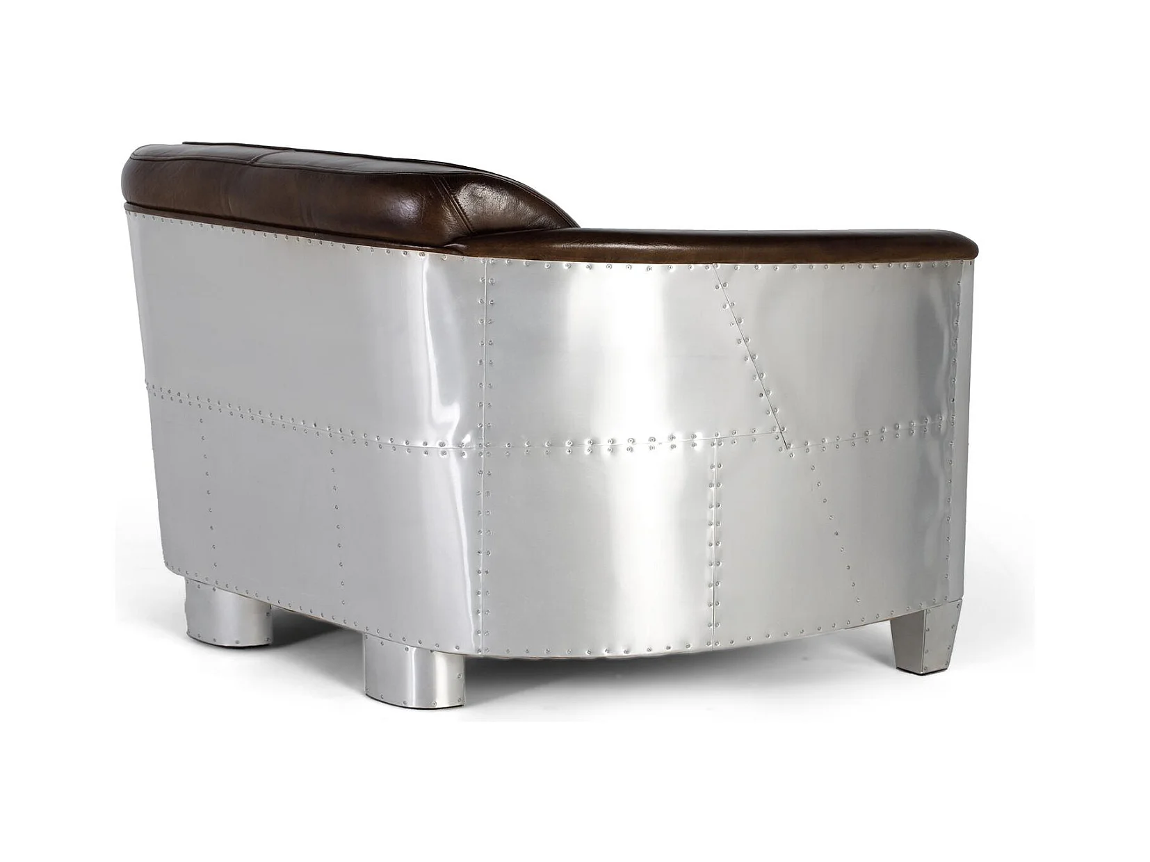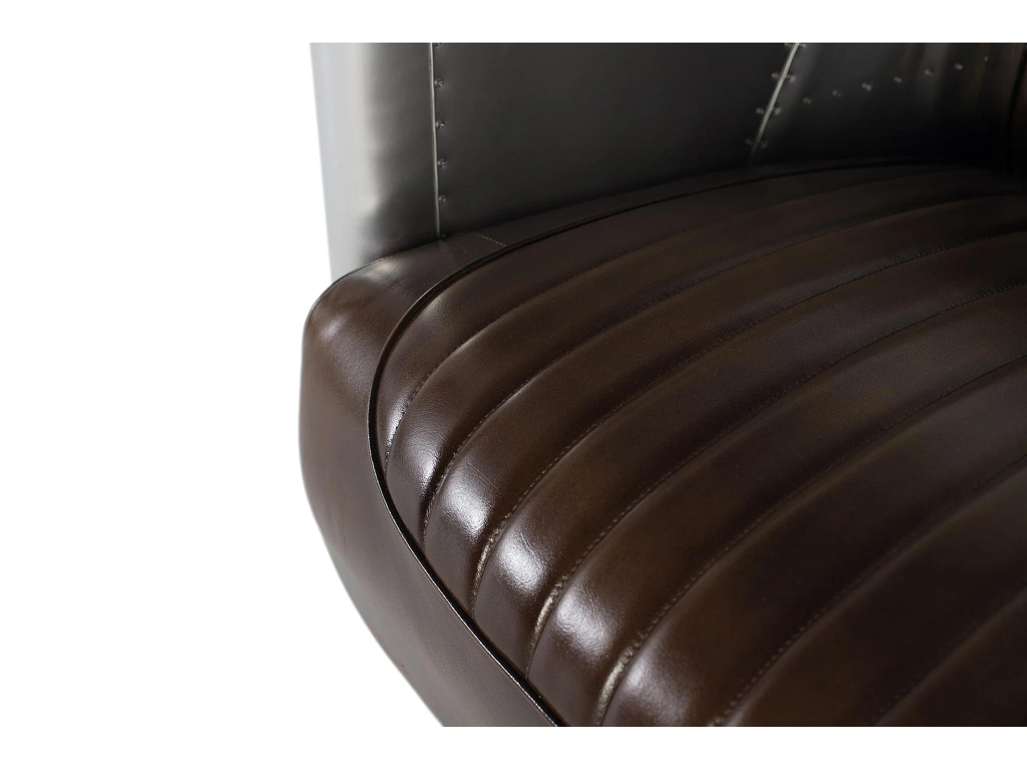 Tweezitsbank bekleed met bruin leer met een antieke afwerking