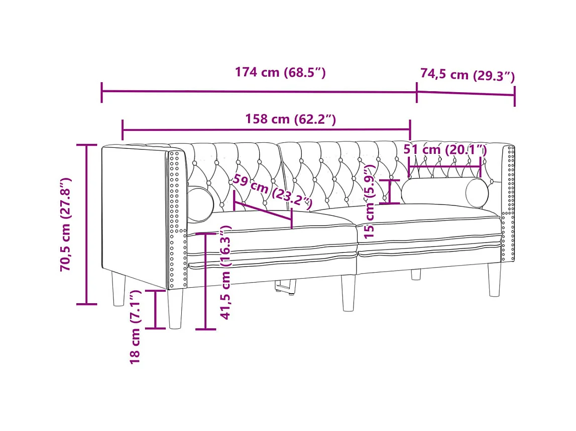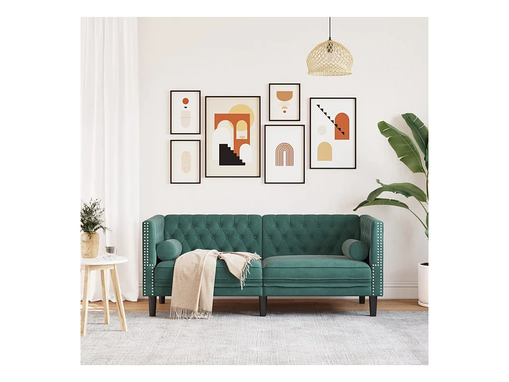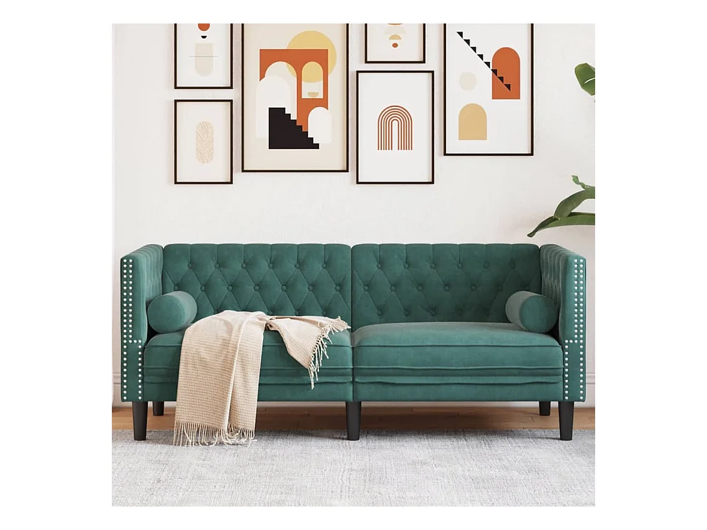 Tweezitsbank Chesterfield-stijl en bolsters fluweel donkergroen