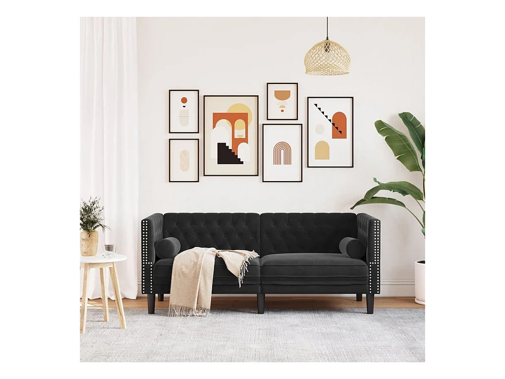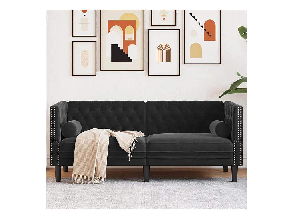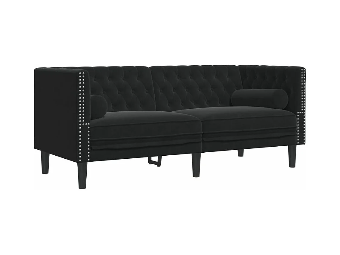 Tweezitsbank Chesterfield-stijl en bolsters fluweel zwart