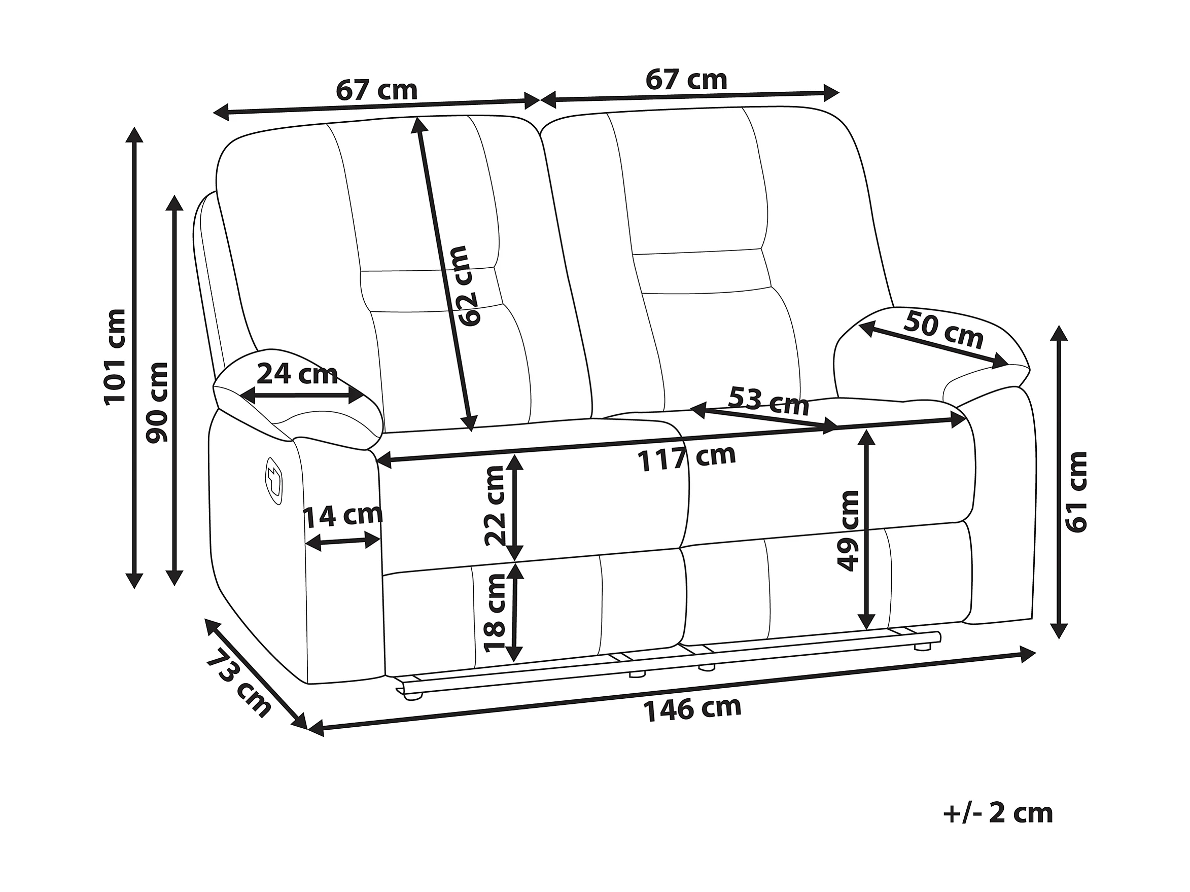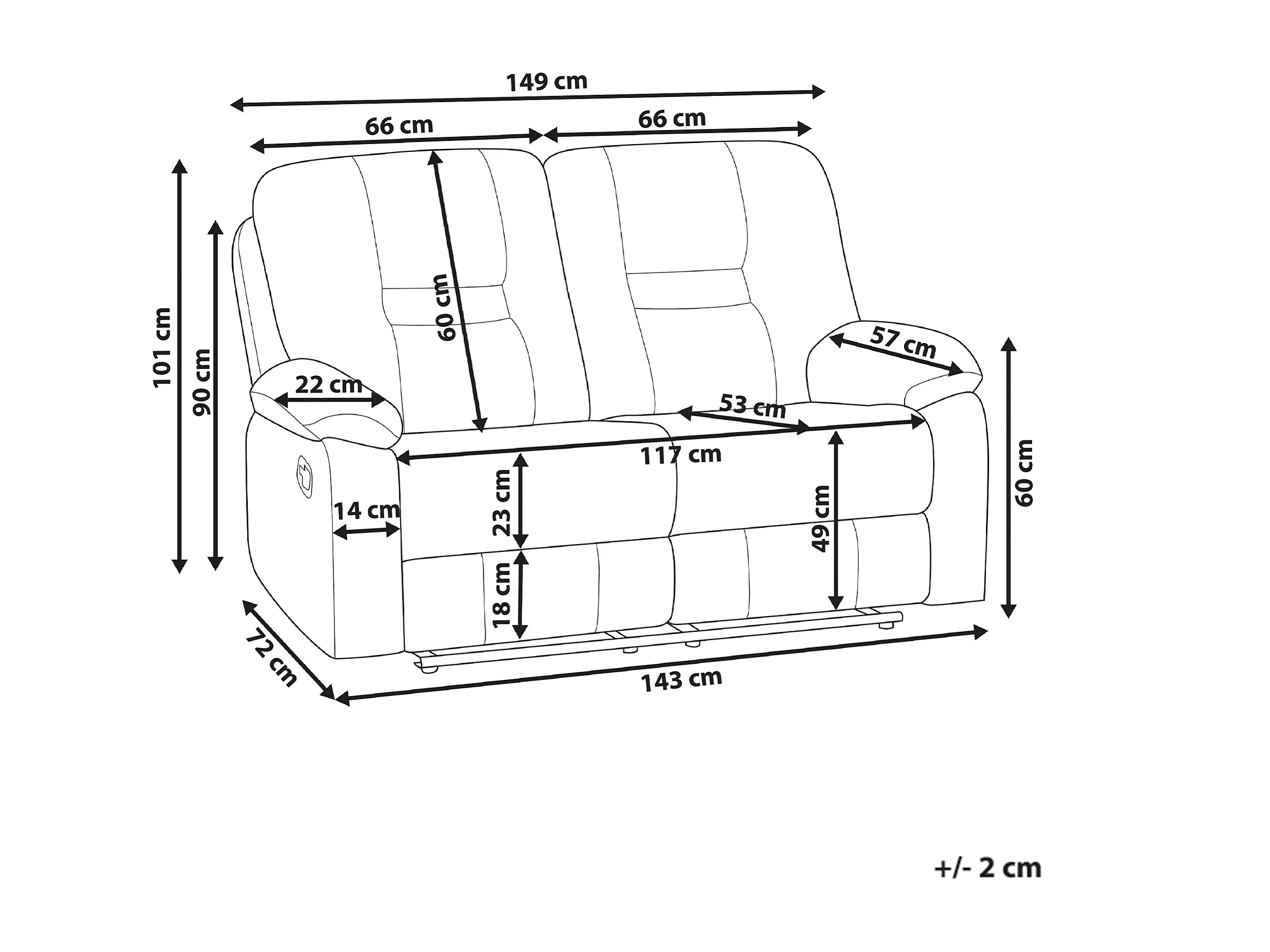 Handmatig verstelbare bank BERGEN Kunstleer Bruin 2-zitter