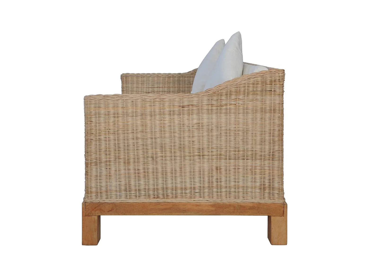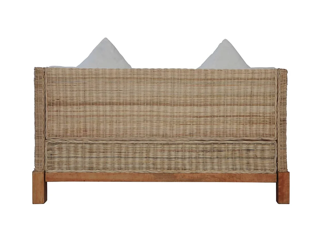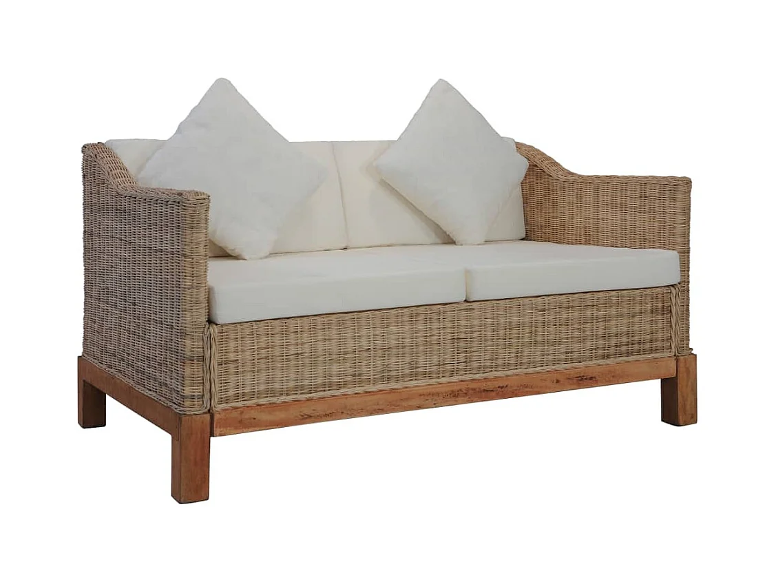 Tweezitsbank met kussens natuurlijk rattan bruin