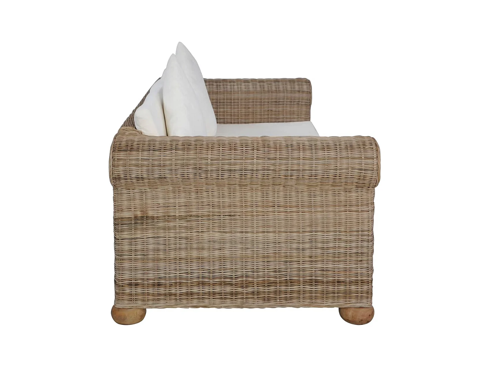 Tweezitsbank met kussens natuurlijk rattan bruin
