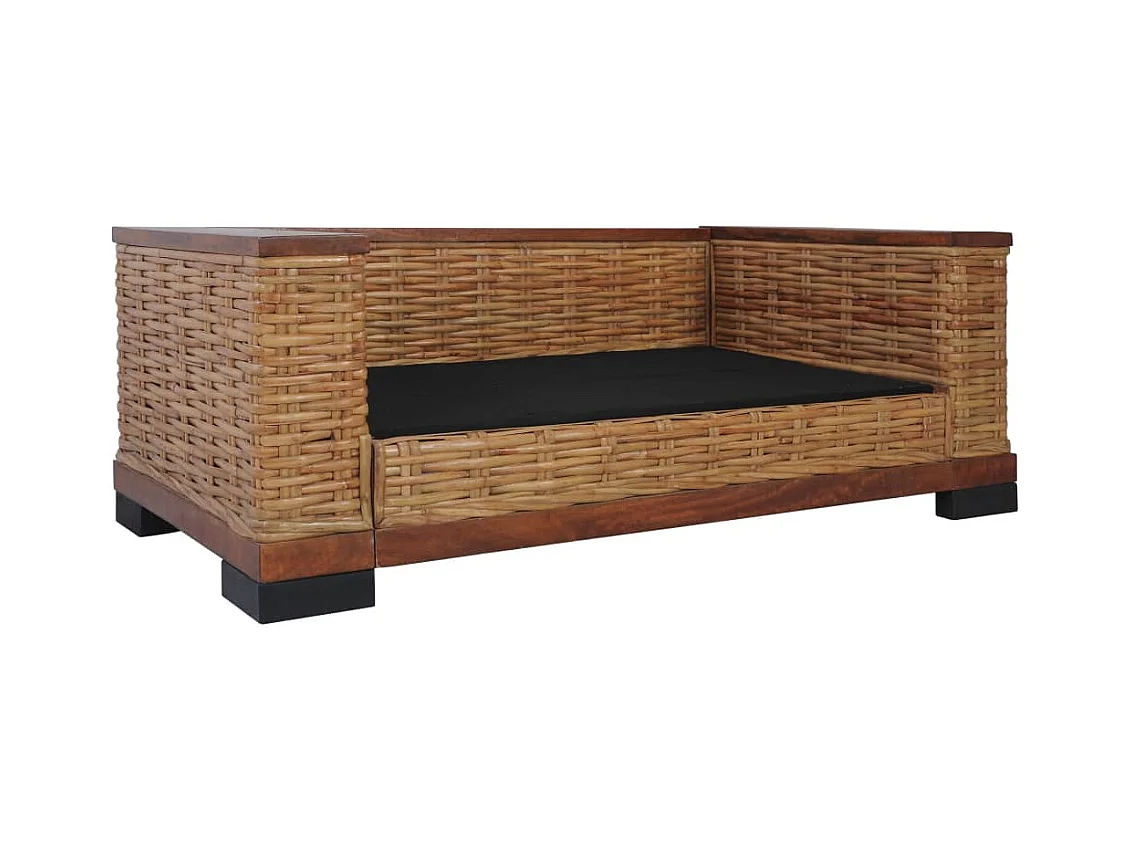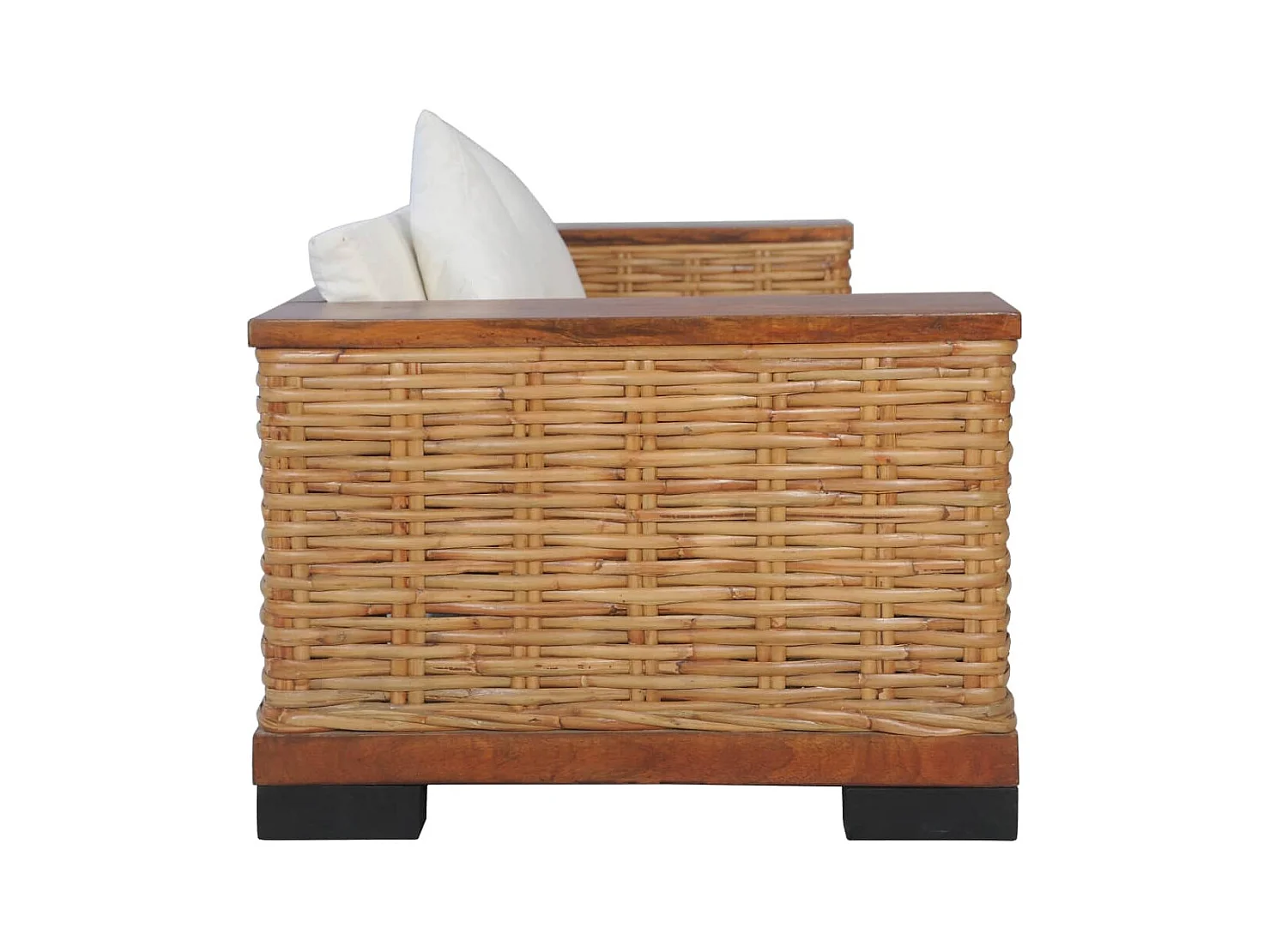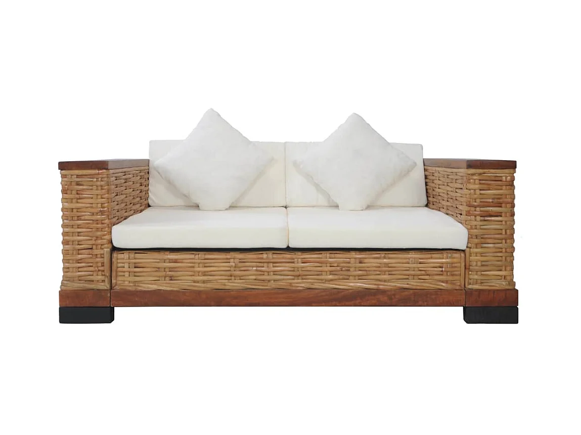 Tweezitsbank met kussens natuurlijk rattan bruin