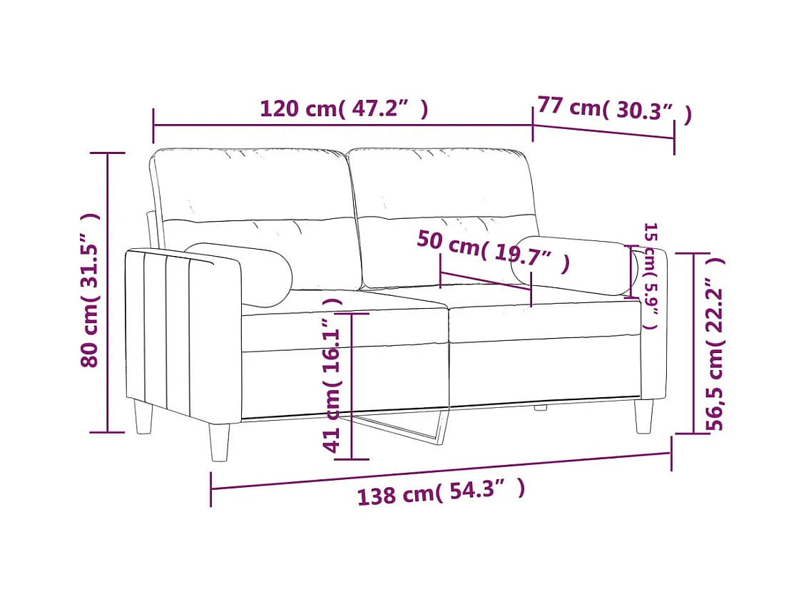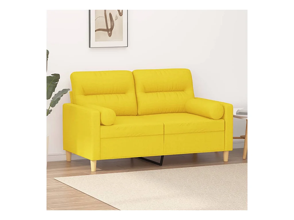 Tweezitsbank met sierkussens 120 cm stof lichtgeel NL563884