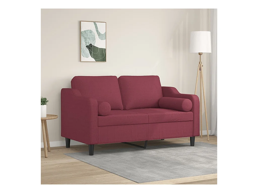 Tweezitsbank met sierkussens 120 cm stof wijnrood