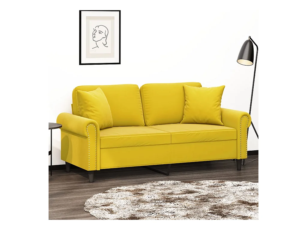 Tweezitsbank met sierkussens 140 cm fluweel geel BE933084