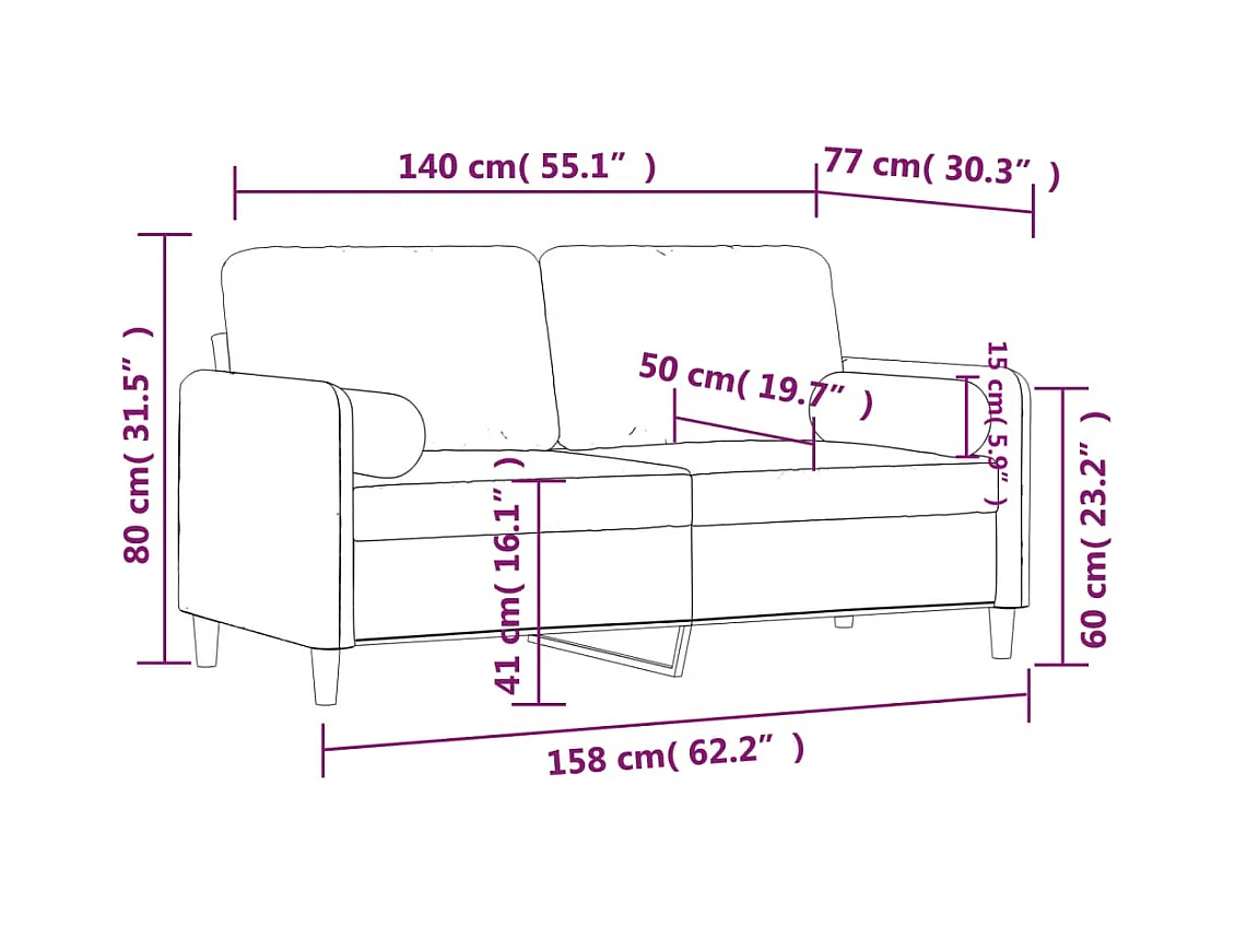 Tweezitsbank met sierkussens 140 cm fluweel donkergrijs