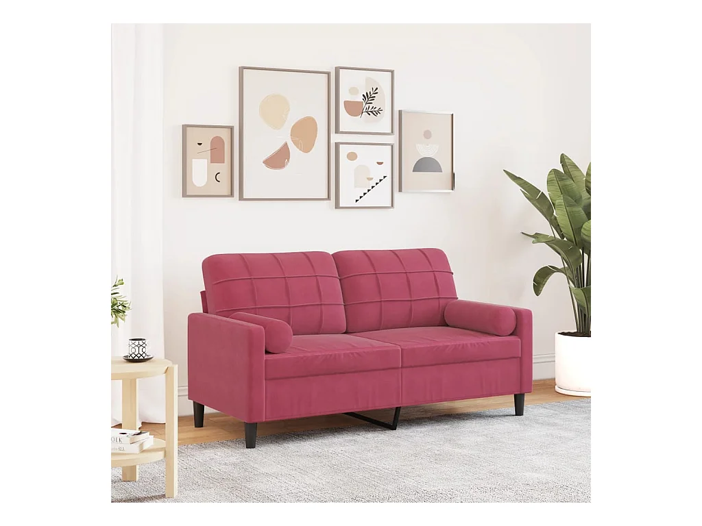 Tweezitsbank met sierkussens 140 cm fluweel wijnrood