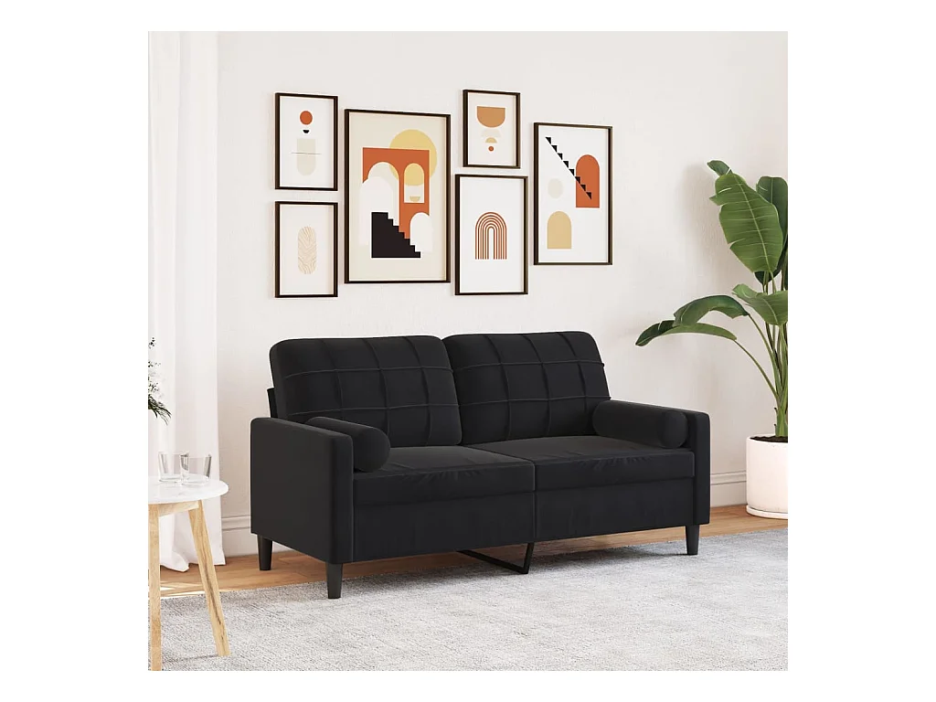 Tweezitsbank met sierkussens 140 cm fluweel zwart