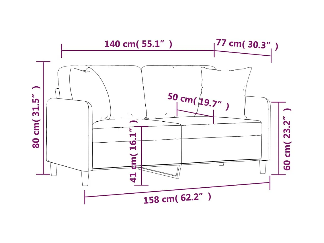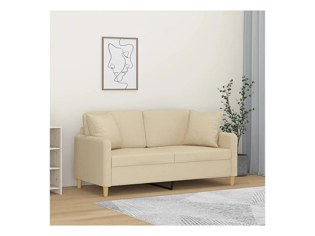 Tweezitsbank met sierkussens 140 cm stof crèmekleurig