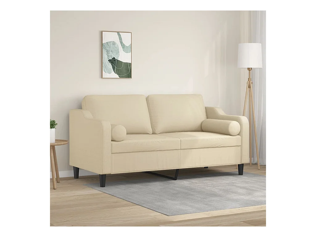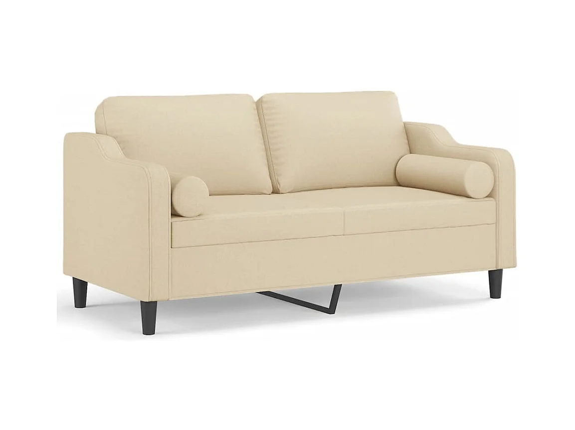 Tweezitsbank met sierkussens 140 cm stof crèmekleurig