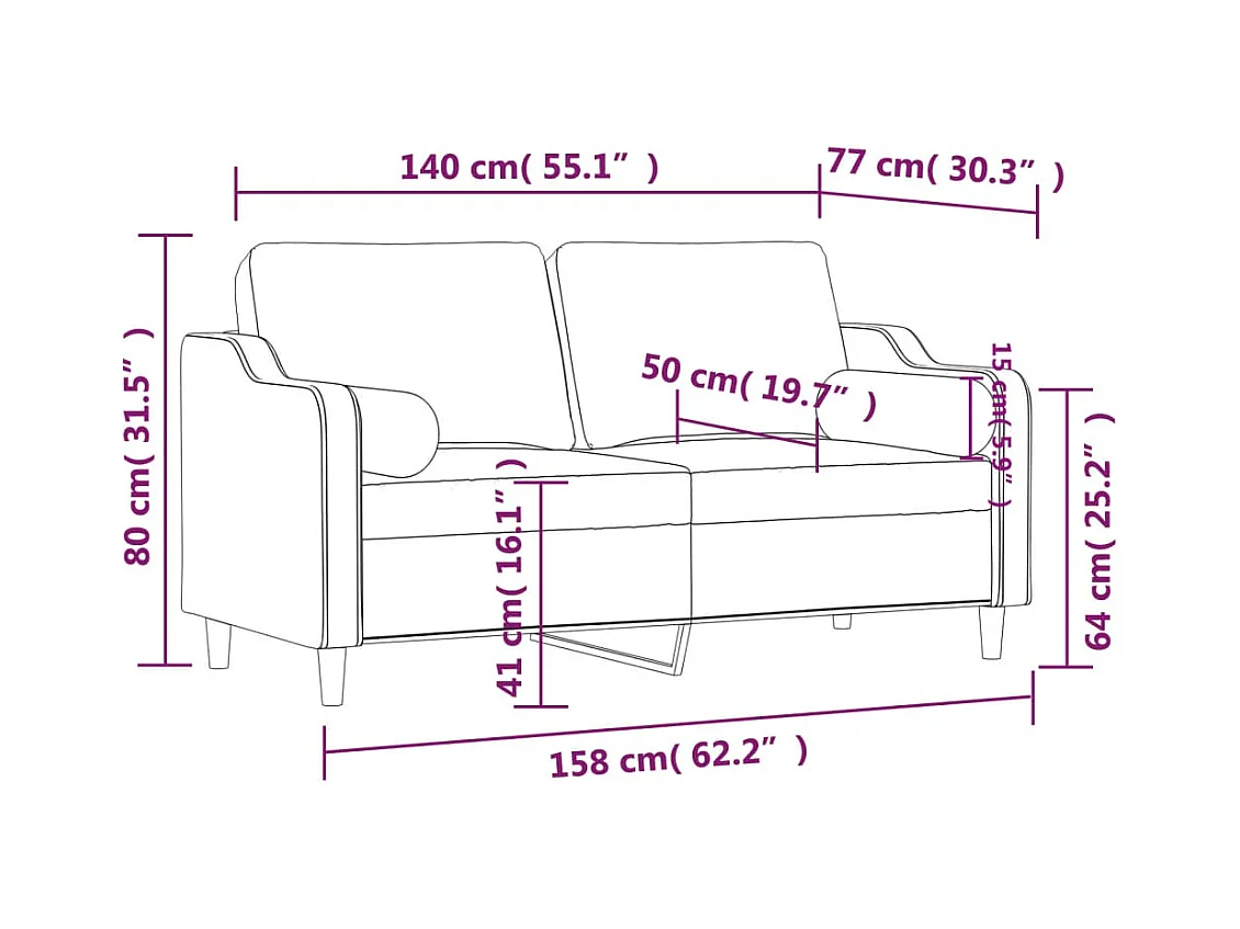 Tweezitsbank met sierkussens 140 cm stof wijnrood