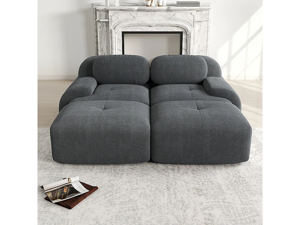 Tweezitsbank van geruite fluweel, antislip, met ergonomische armleuningen en zachte, zeer stevige vulling, grijs.