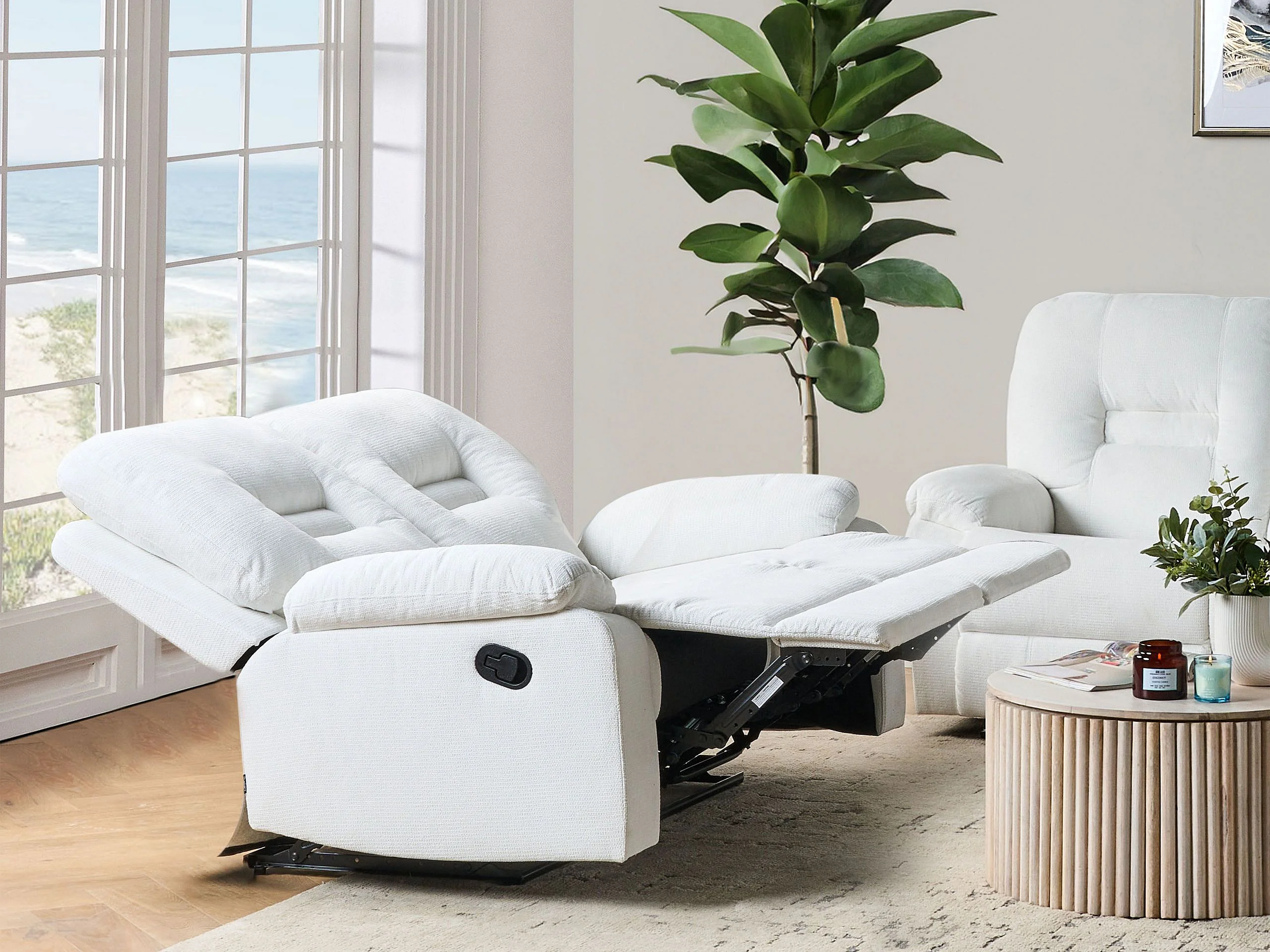 Handmatig verstelbare bank BERGEN Stof Wit 2-zitter