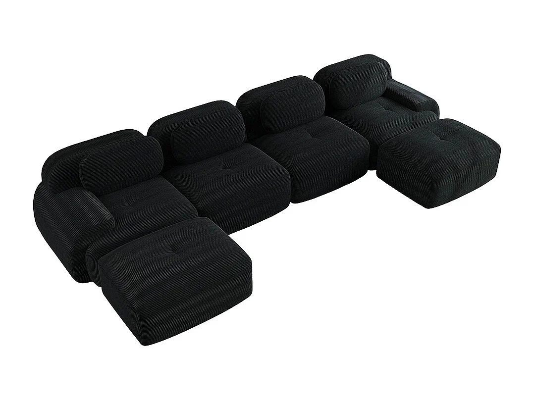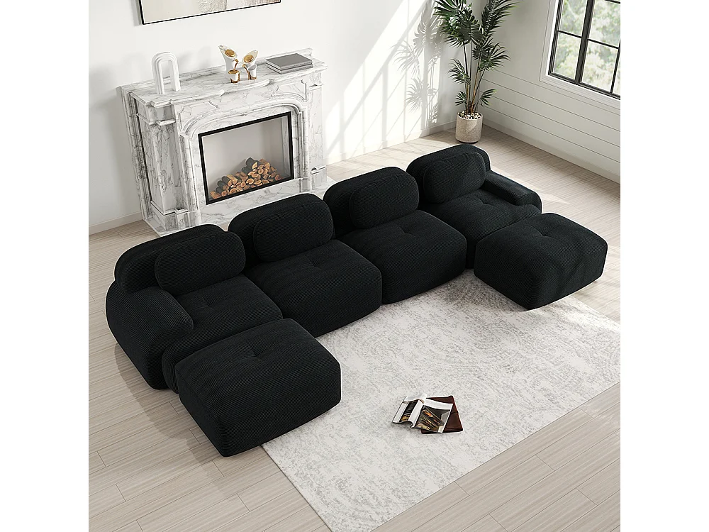 U-vormige bank, ademend geribbeld fluweel, 32D-vulling met hoge veerkracht, extra brede armleuningen, ergonomisch ontwerp, zwart.