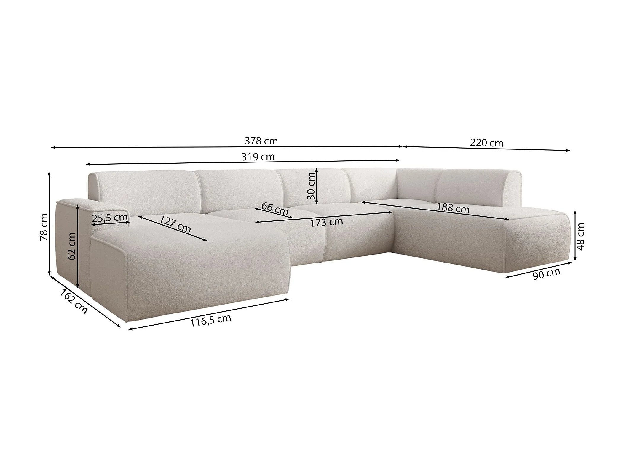 U-vormige bank met rugleuning aan de ottomane links – crème – bouclé – BOUVI