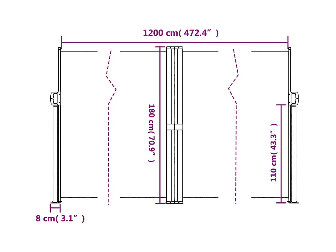 Uitschuifbaar zijluifel Bruin 180x600 cm