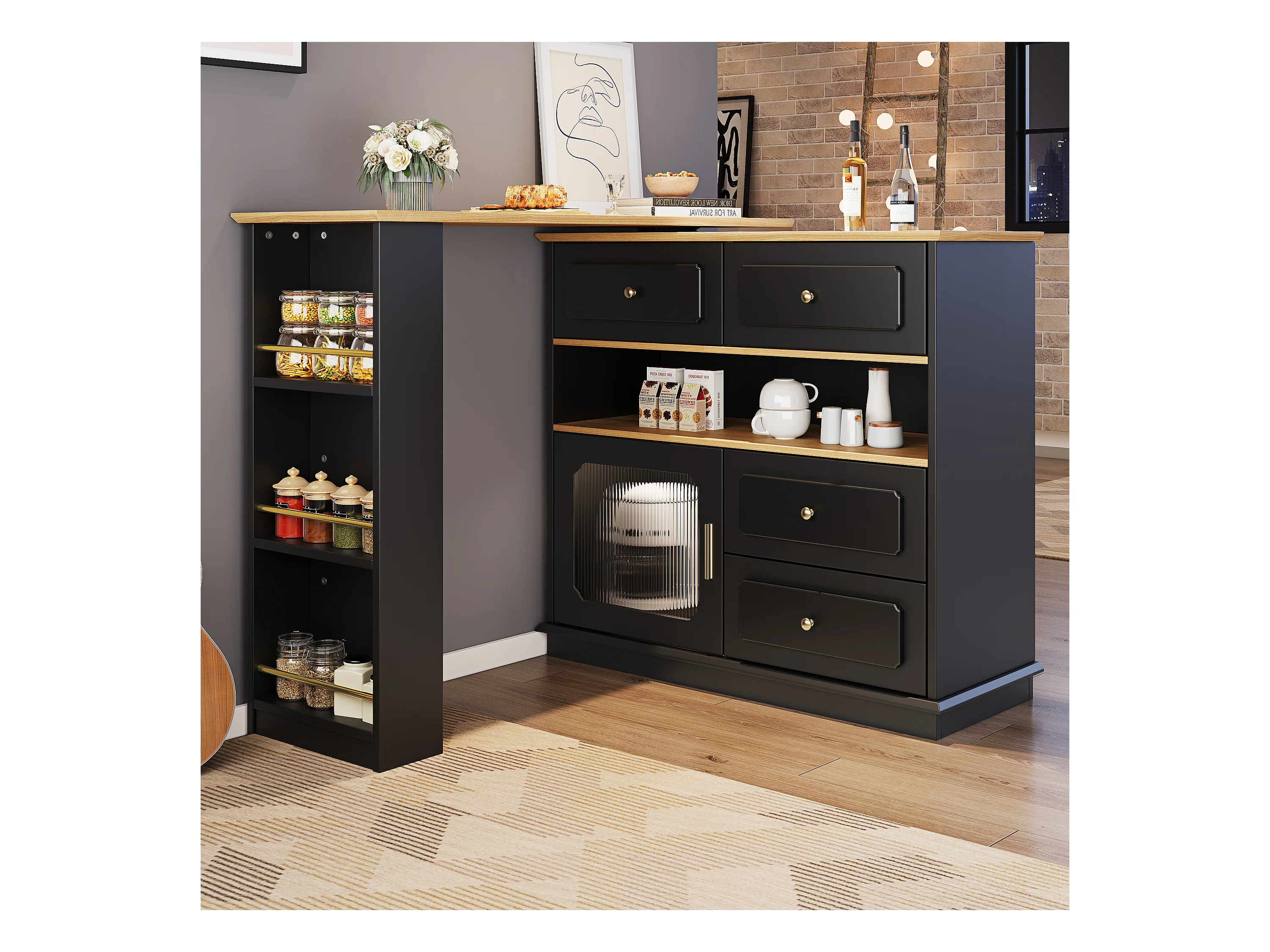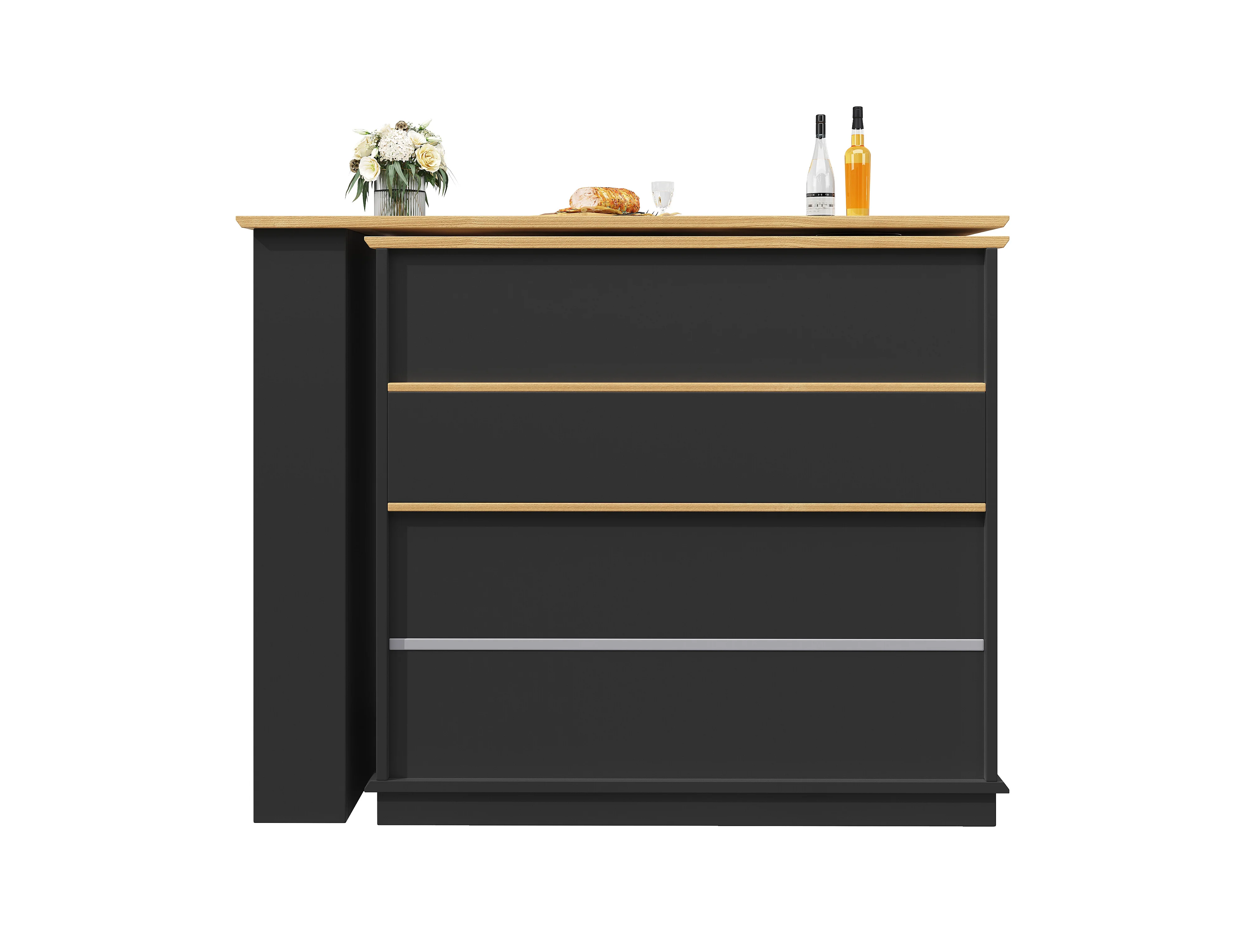 Draaibare barkast - 204 x 39 x 104 cm - met 2 laden + 1 deur + 3 snackplanken - MDF - zwart