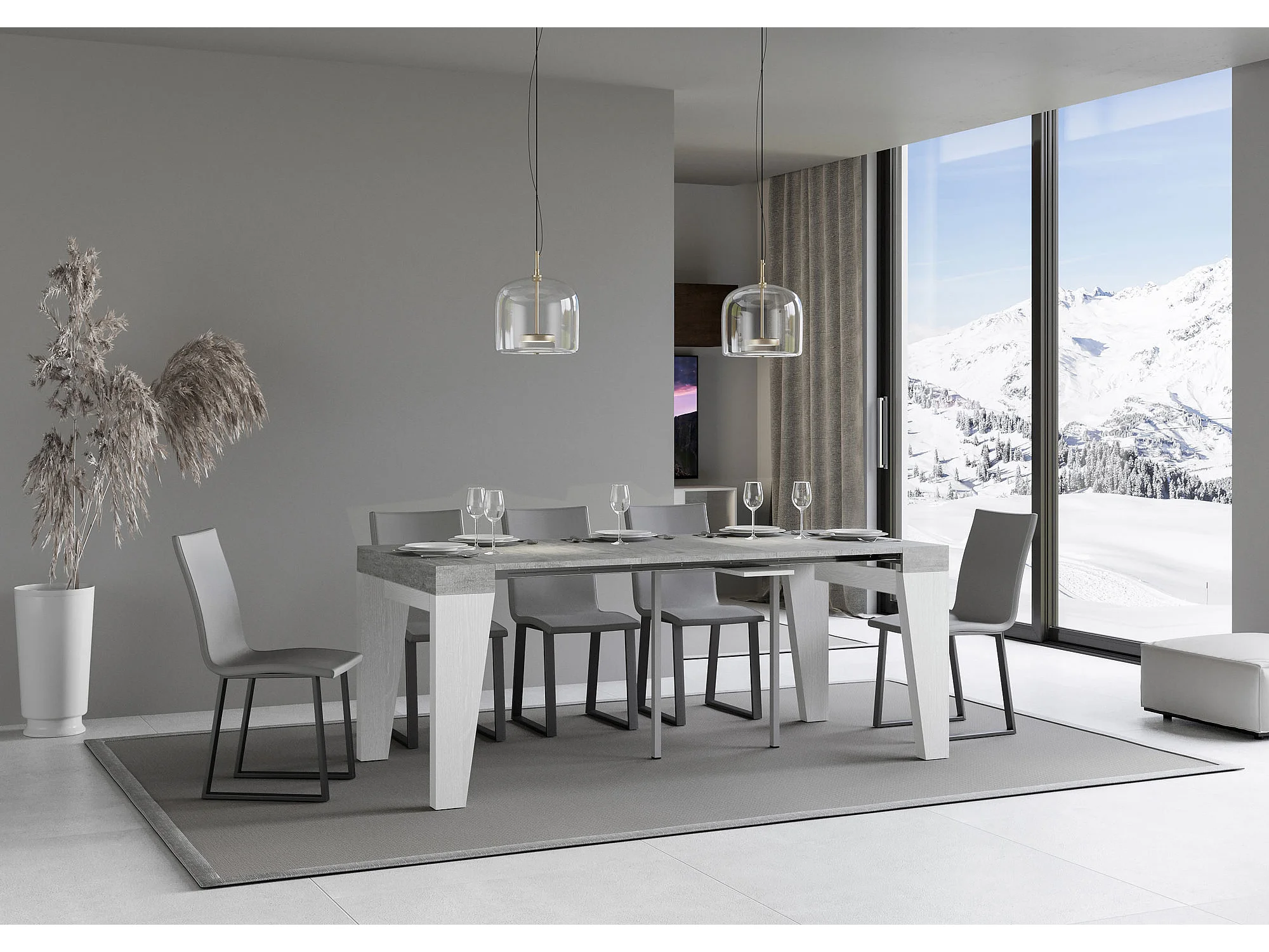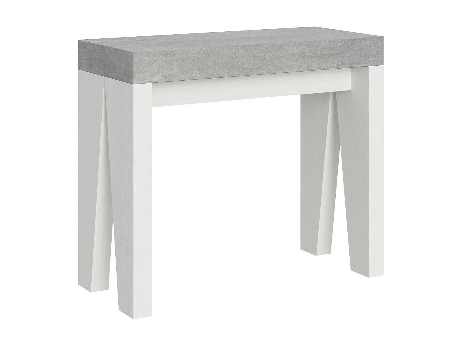 Uitschuifbare betongrijze console met witte houten poten voor 12 personen 40 tot 300 cm Naxo-Steun 4 voet