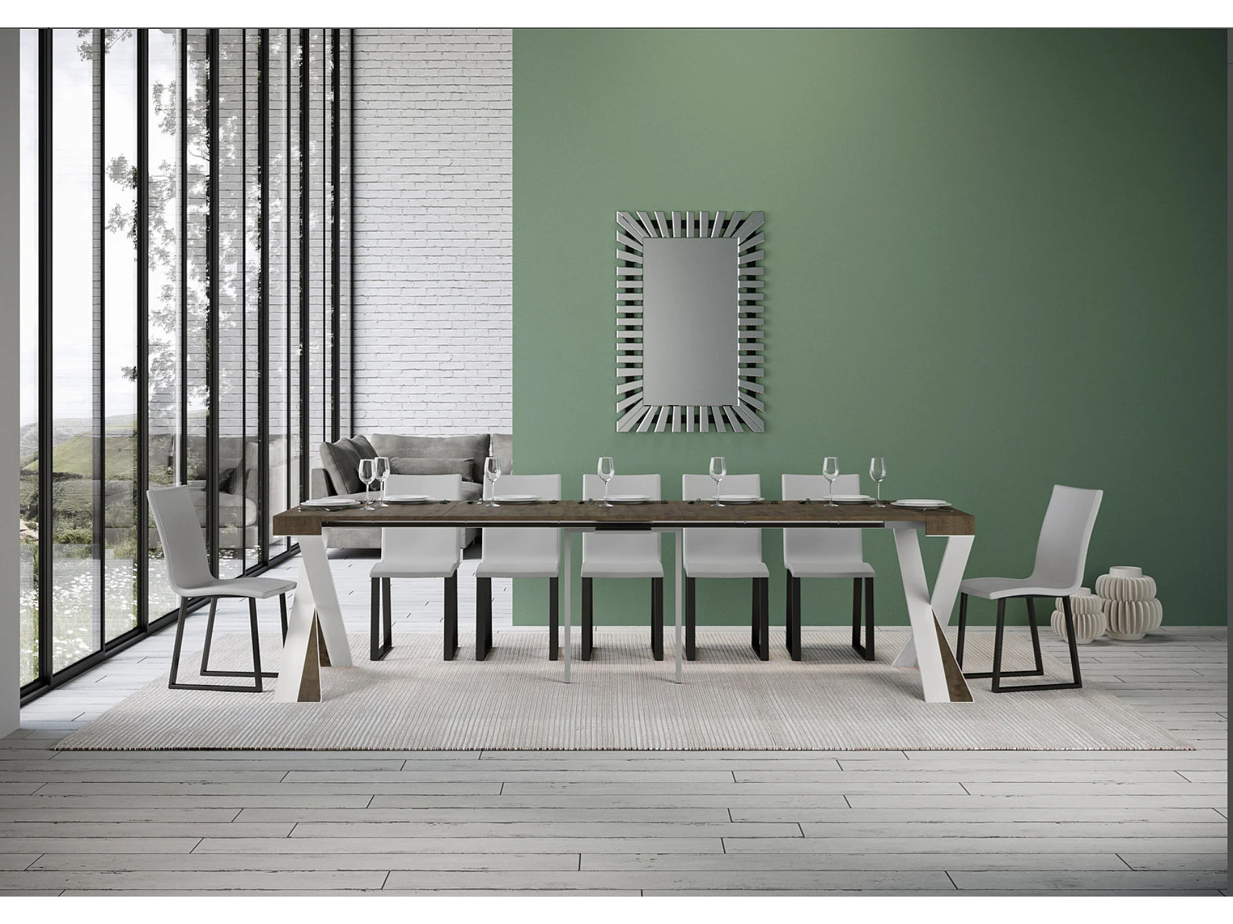 Uitschuifbare console in hout en wit stalen gekruiste poten Diago 90x40/196 of 90x40/300 cm-Kleur Bruin-Steun 4 voet-Verlengsnoeren 5 dunne verlengingen