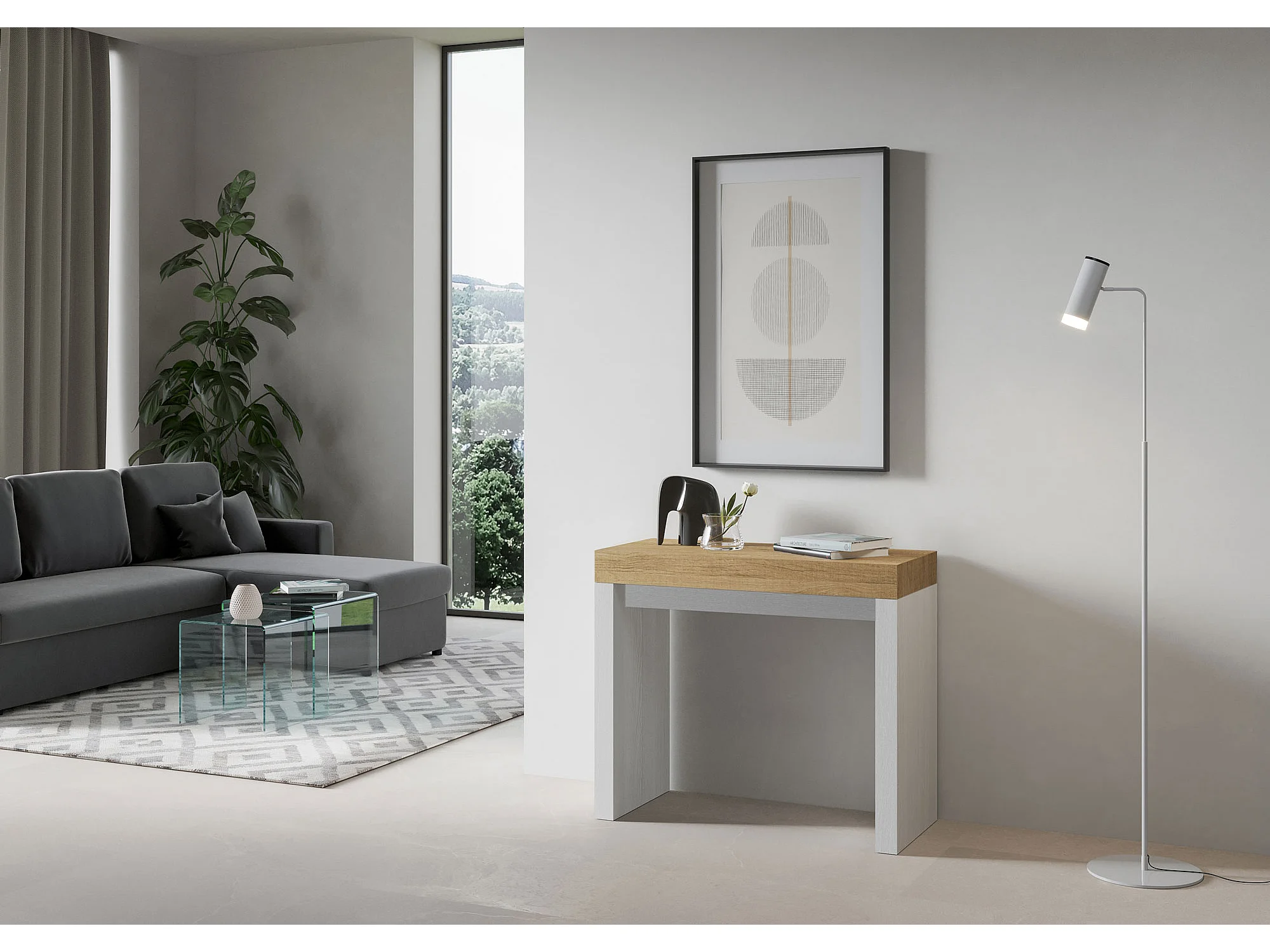 Uitschuifbare console licht hout en witte poten 40 tot 196 cm 8 zitplaatsen Ribo-Voet en steun op zwenkwielen