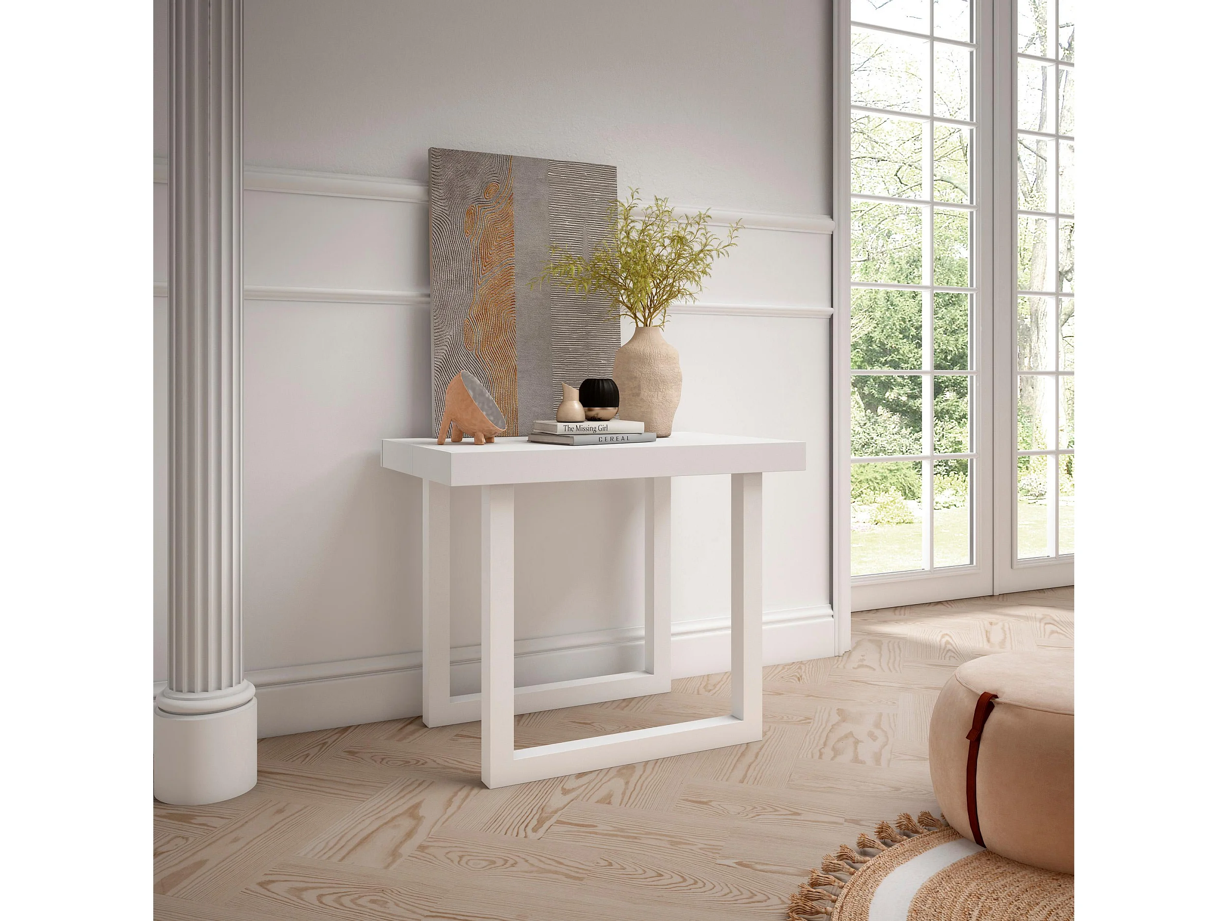 Uitschuifbare Consoletafel, 160x90x73cm, Voor 8 personen, Massief houten poten, Wit