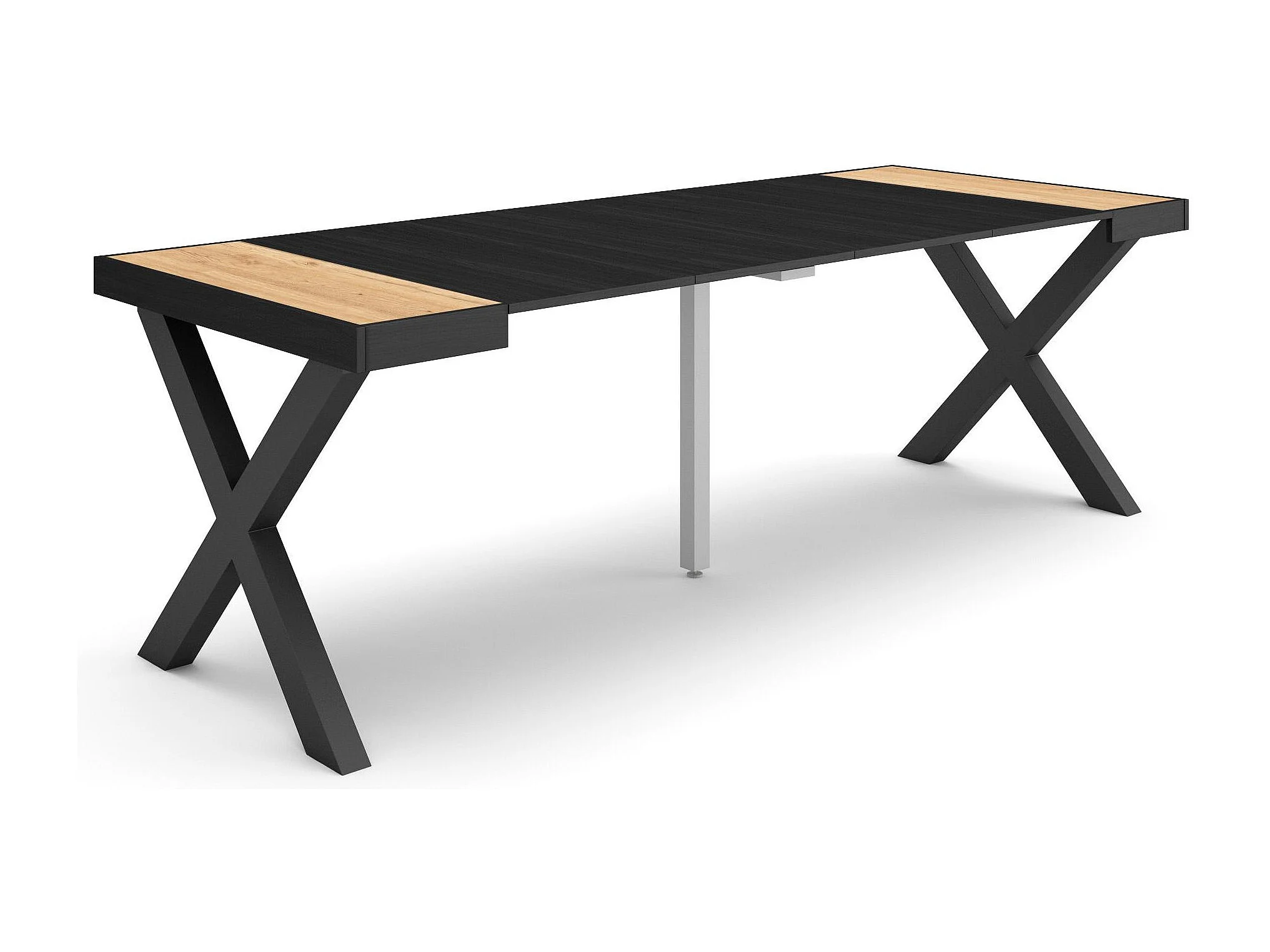 Uitschuifbare Consoletafel, 222x90x73cm, Voor 10 personen, Massief houten poten, Eiken/Zwart