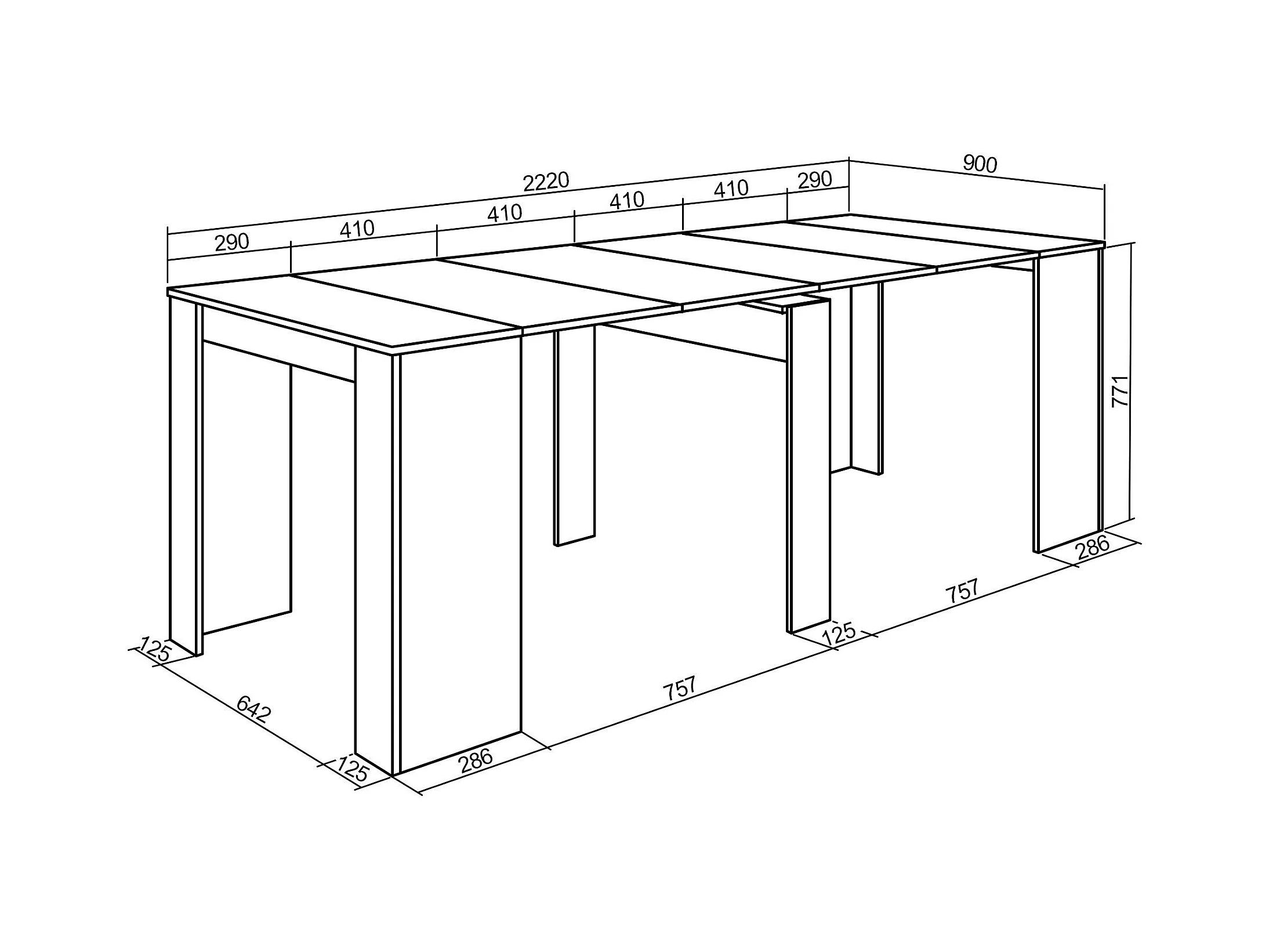 Uitschuifbare Consoletafel, 222x90x77cm, Voor 10 personen, Tafel, Zwart
