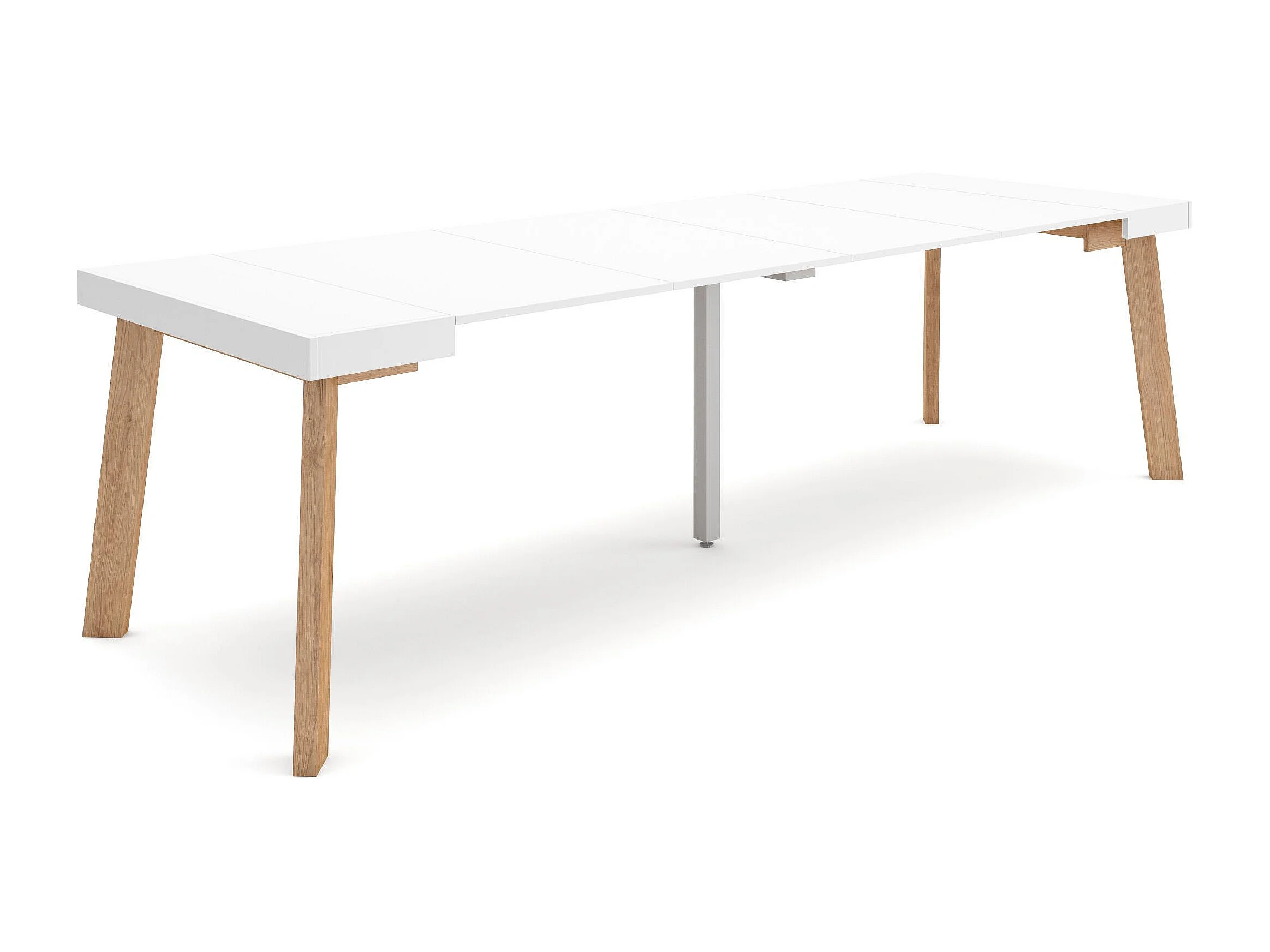 Uitschuifbare Consoletafel, 262x90x73cm, Voor 12 personen, Houten poten, Wit