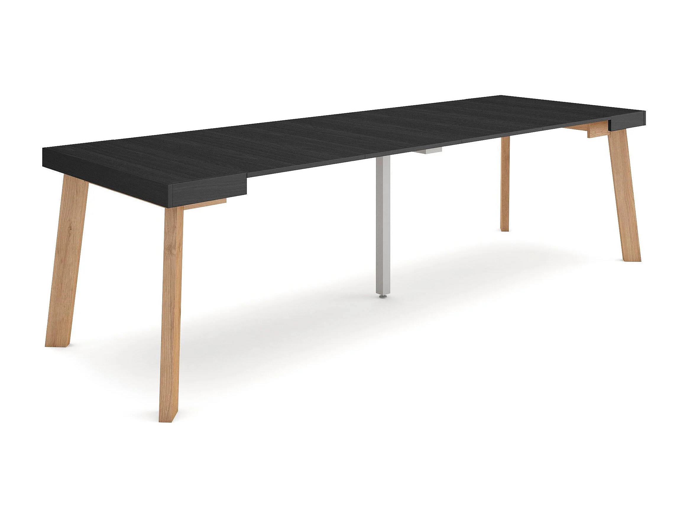 Uitschuifbare Consoletafel, 262x90x73cm, Voor 12 personen, Houten poten, Zwart