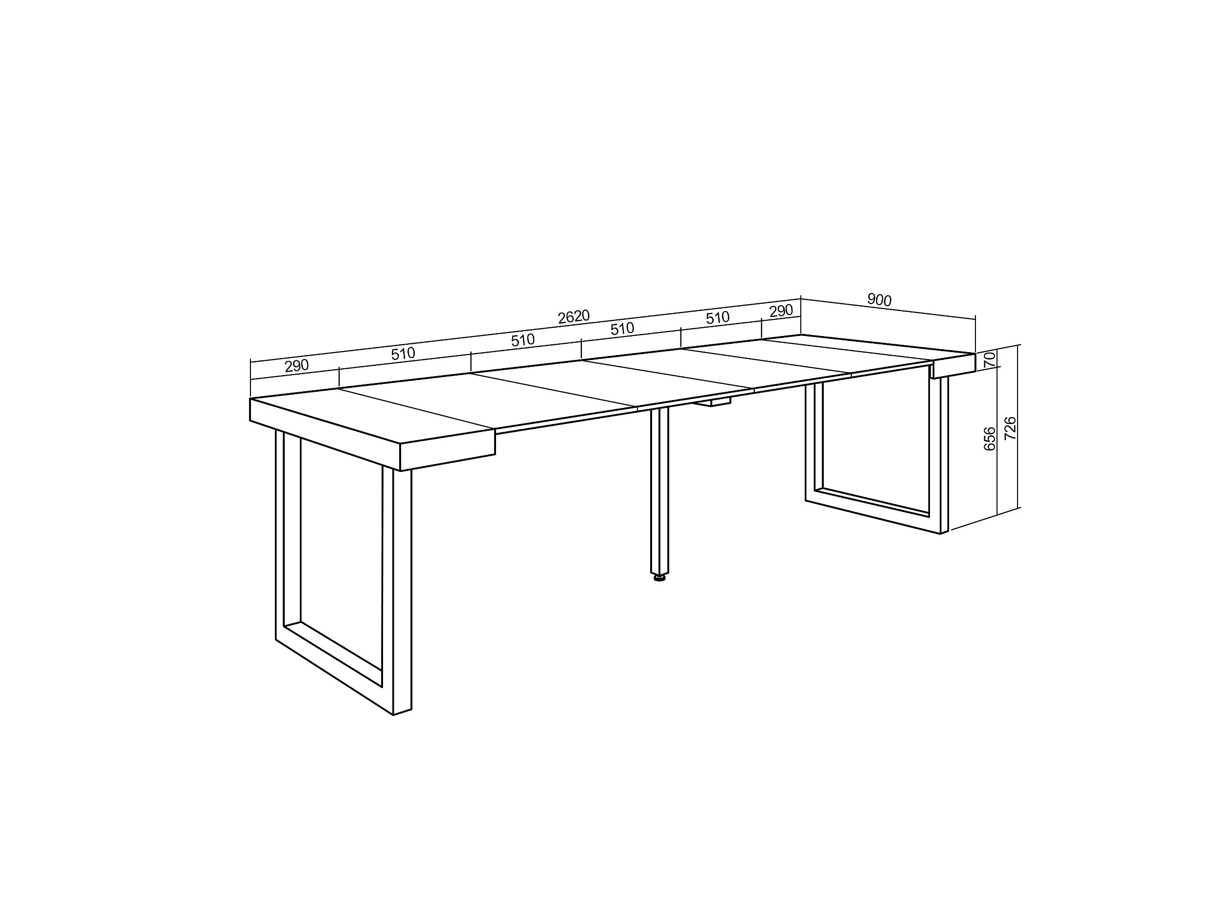 Uitschuifbare Consoletafel, 262x90x73cm, Voor 12 personen, Massief houten poten, Eiken/Wit