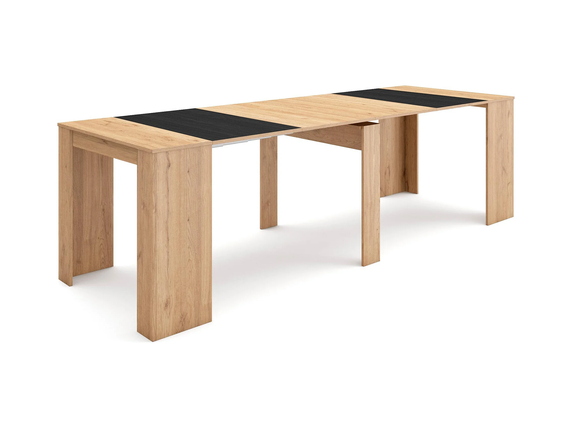 Uitschuifbare Consoletafel, 262x90x77cm, Voor 12 personen, Tafel, Eiken/Zwart