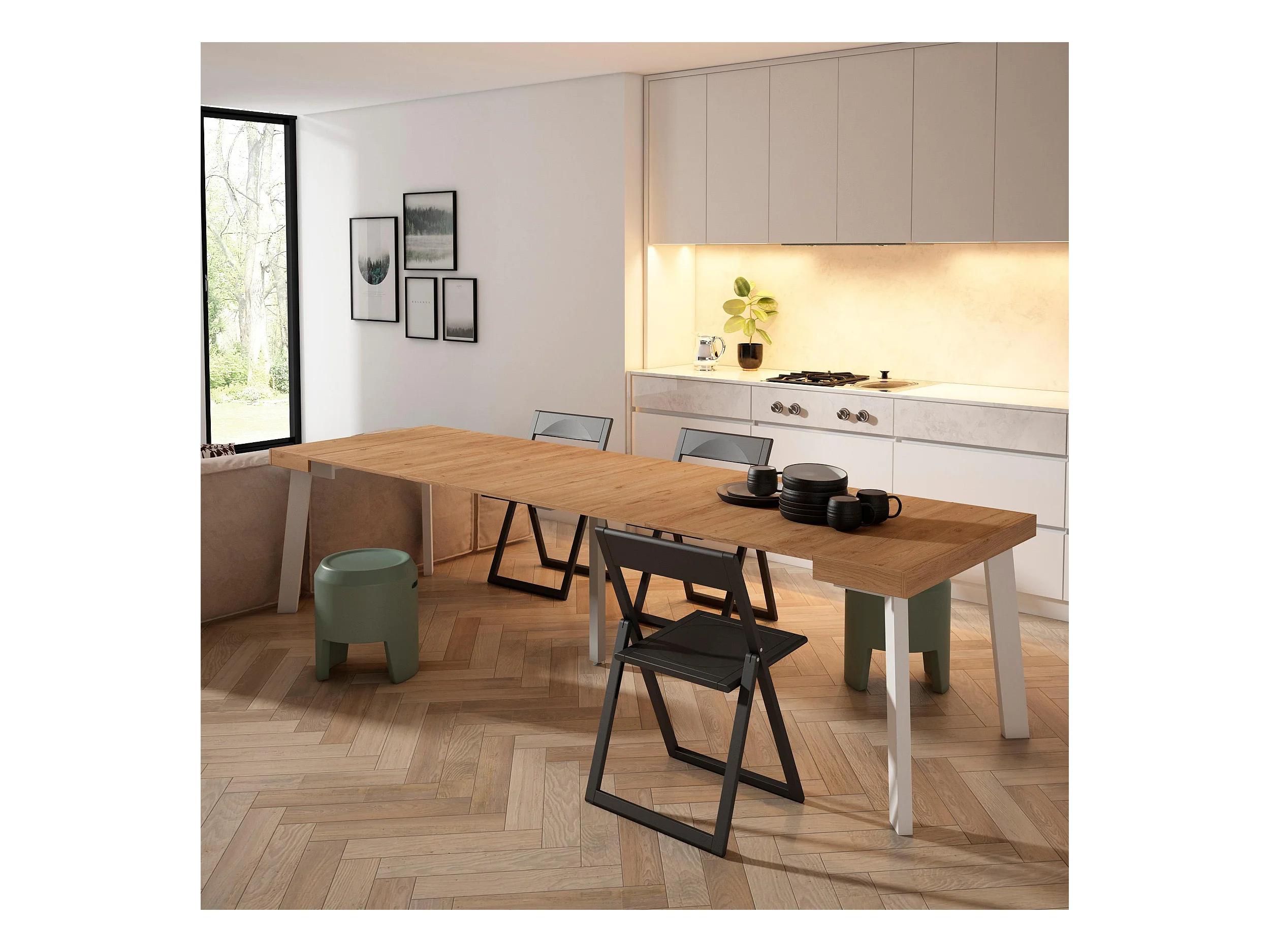 Uitschuifbare Consoletafel, 302x90x73cm, Voor 14 personen, Houten poten, Eiken