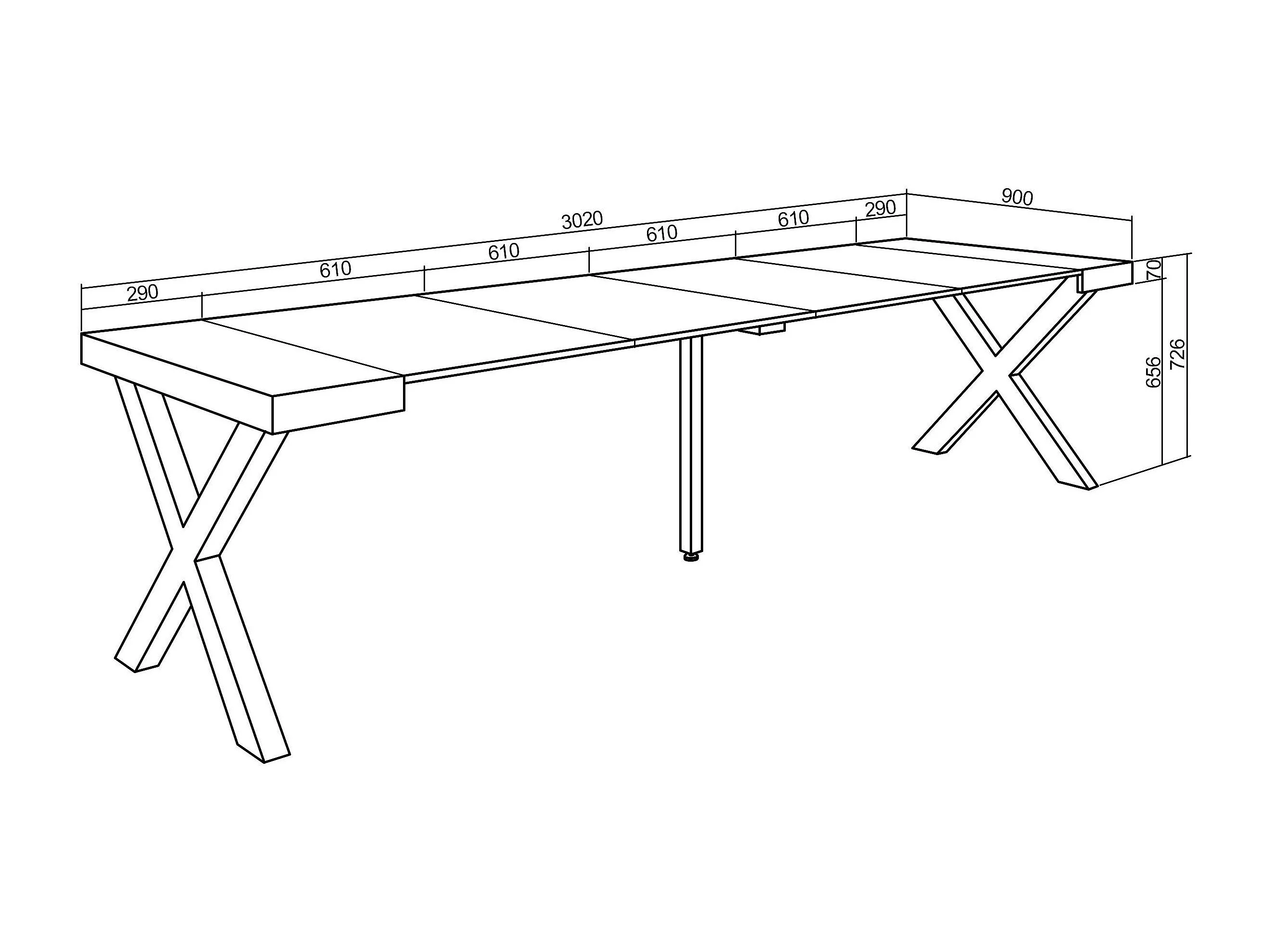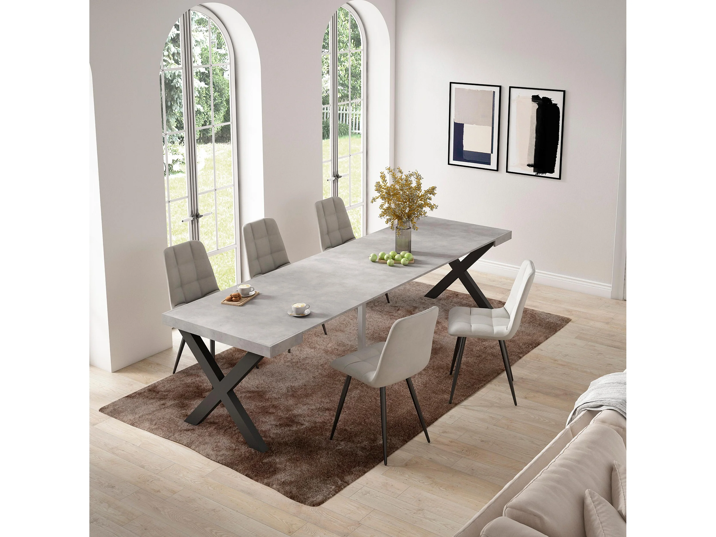 Uitschuifbare Consoletafel, 302x90x73cm, Voor 14 personen, Massief houten poten, Cement