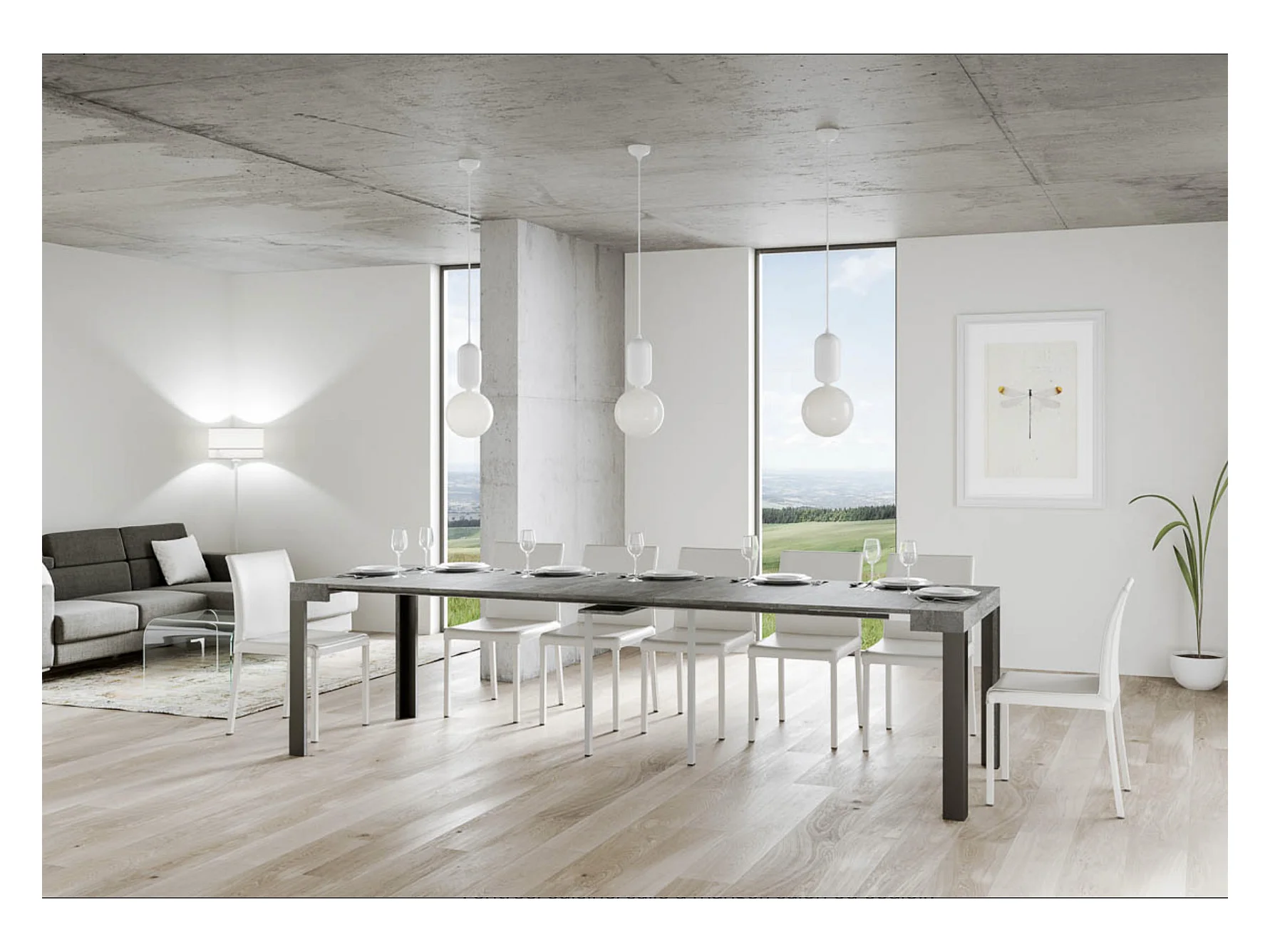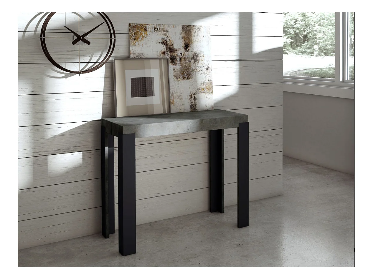 Uitschuifbaar consoleontwerp in hout en antraciet staal Kiza evolution-Kleur Cementgrijs-Steun 4 voet-Verlengsnoeren 3 uitbreidingen