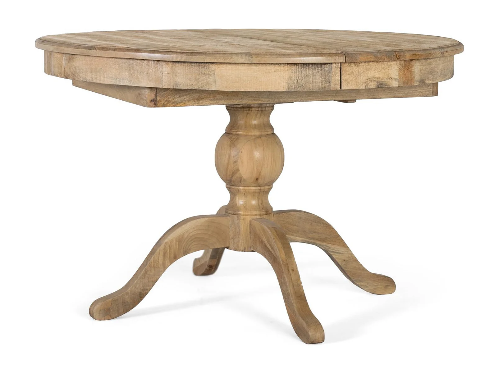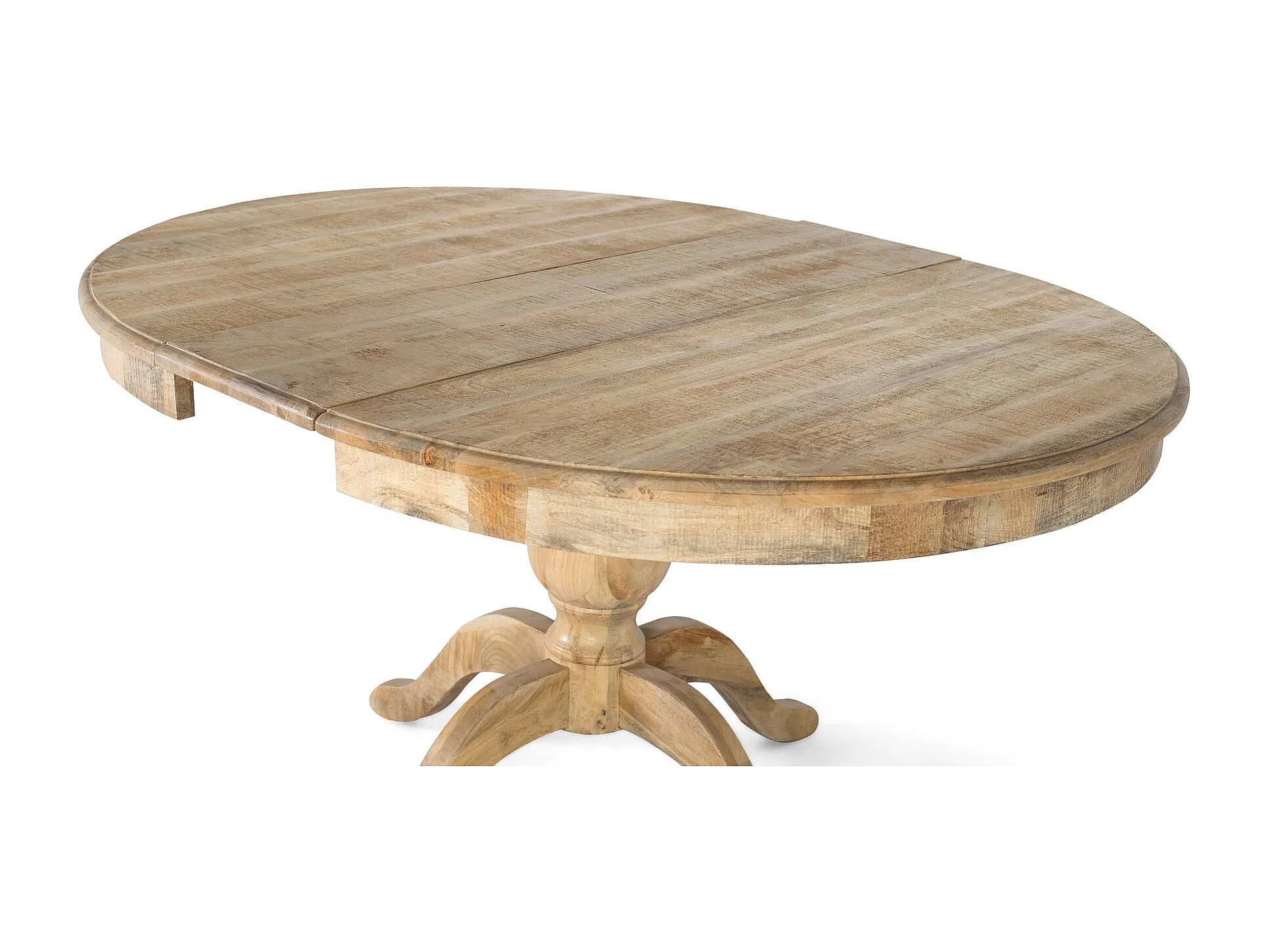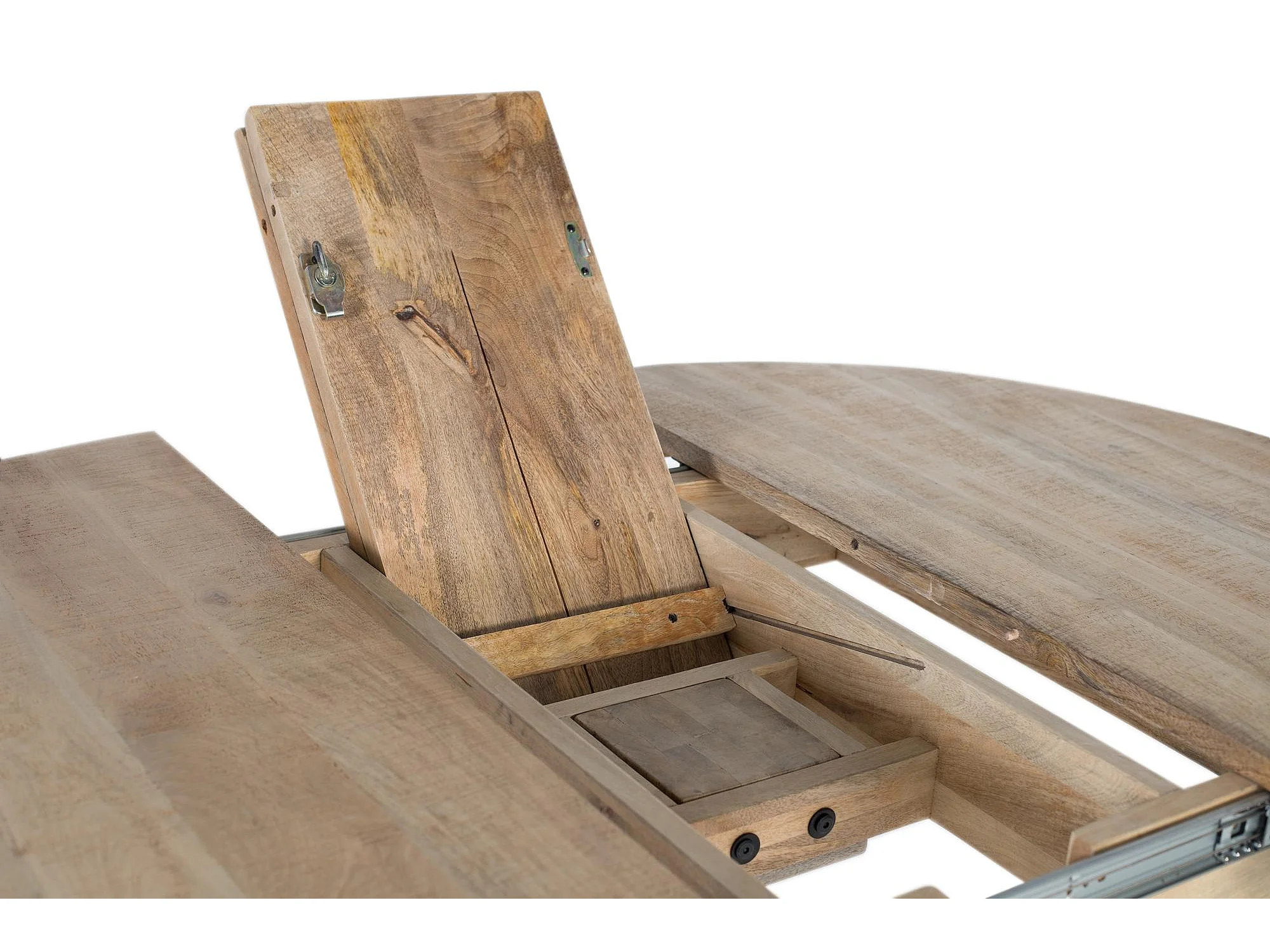 Uitschuifbare kribbetafel van manguierhout, vervaardigd op de hoofdas
