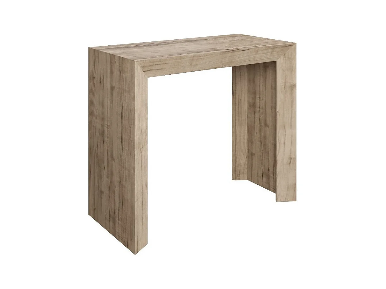 Moderne houten uitschuifbare console 90x40/196 of 90x40/300 cm Naxo-Kleur Natuurlijk-Steun 2 voet-Verlengsnoeren 5 uitbreidingen