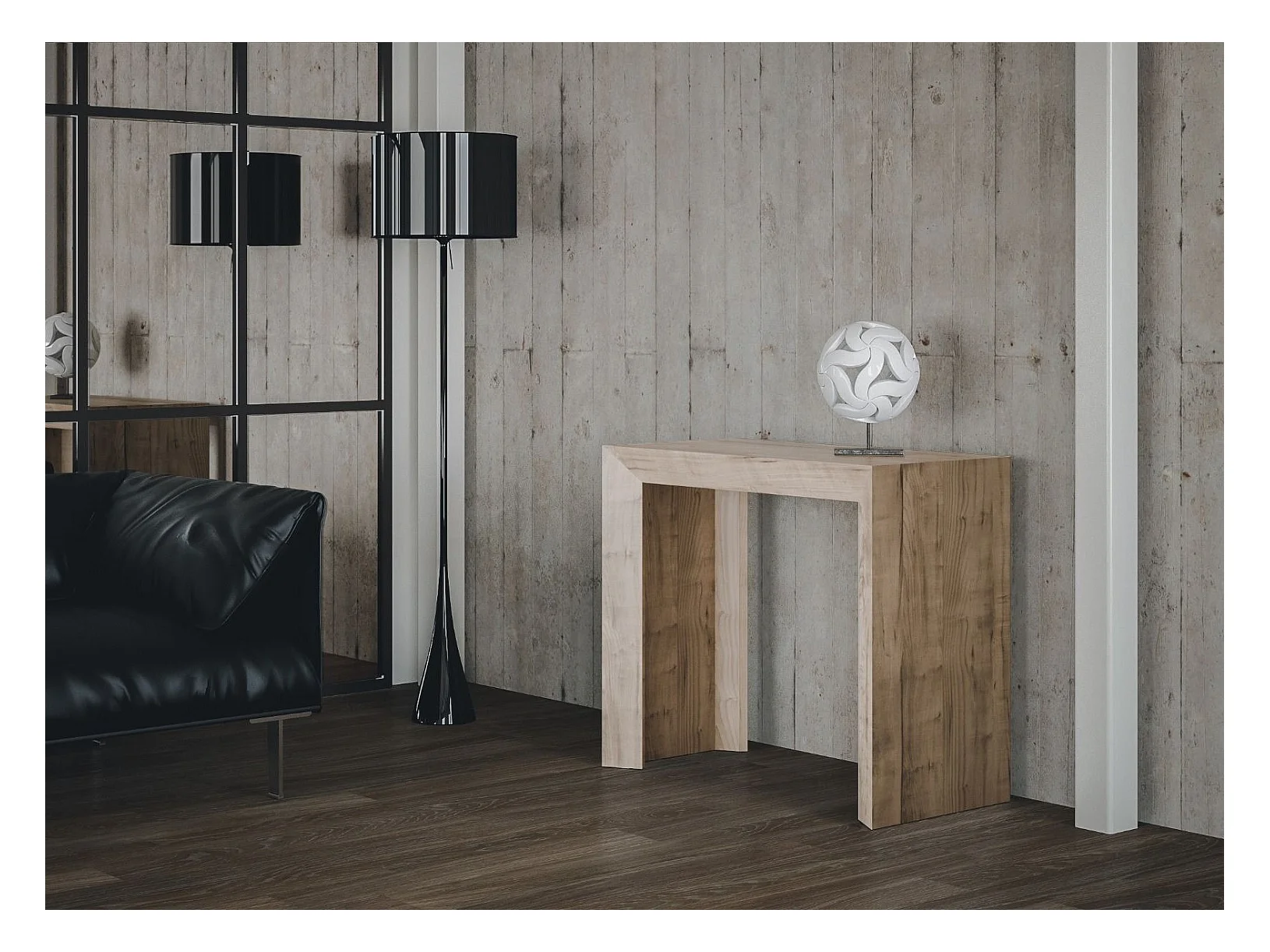 Tiko uitschuifbare houten en stalen console 90x40/196 of 90x40/300 cm-Kleur Natuurlijk-Steun 2 voet-Verlengsnoeren 3 uitbreidingen