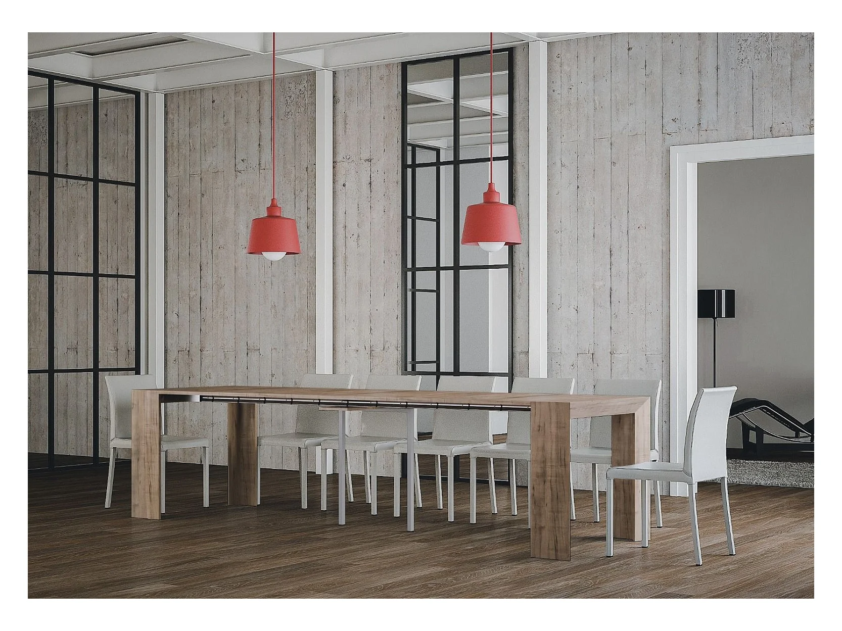 Uitschuifbare console in massief licht grenen en antraciet metalen poten voor 14 personen 40 tot 290 cm Orina