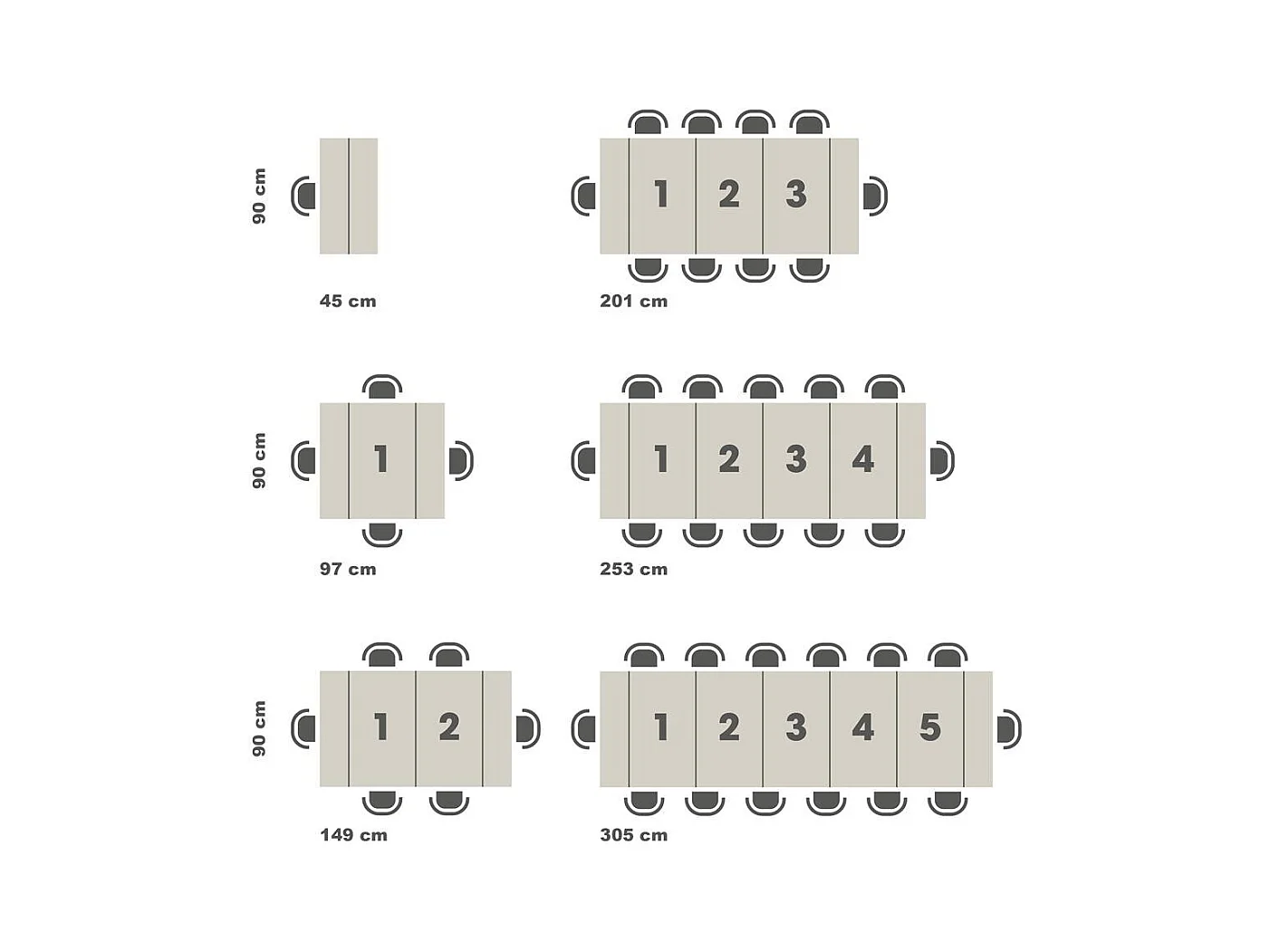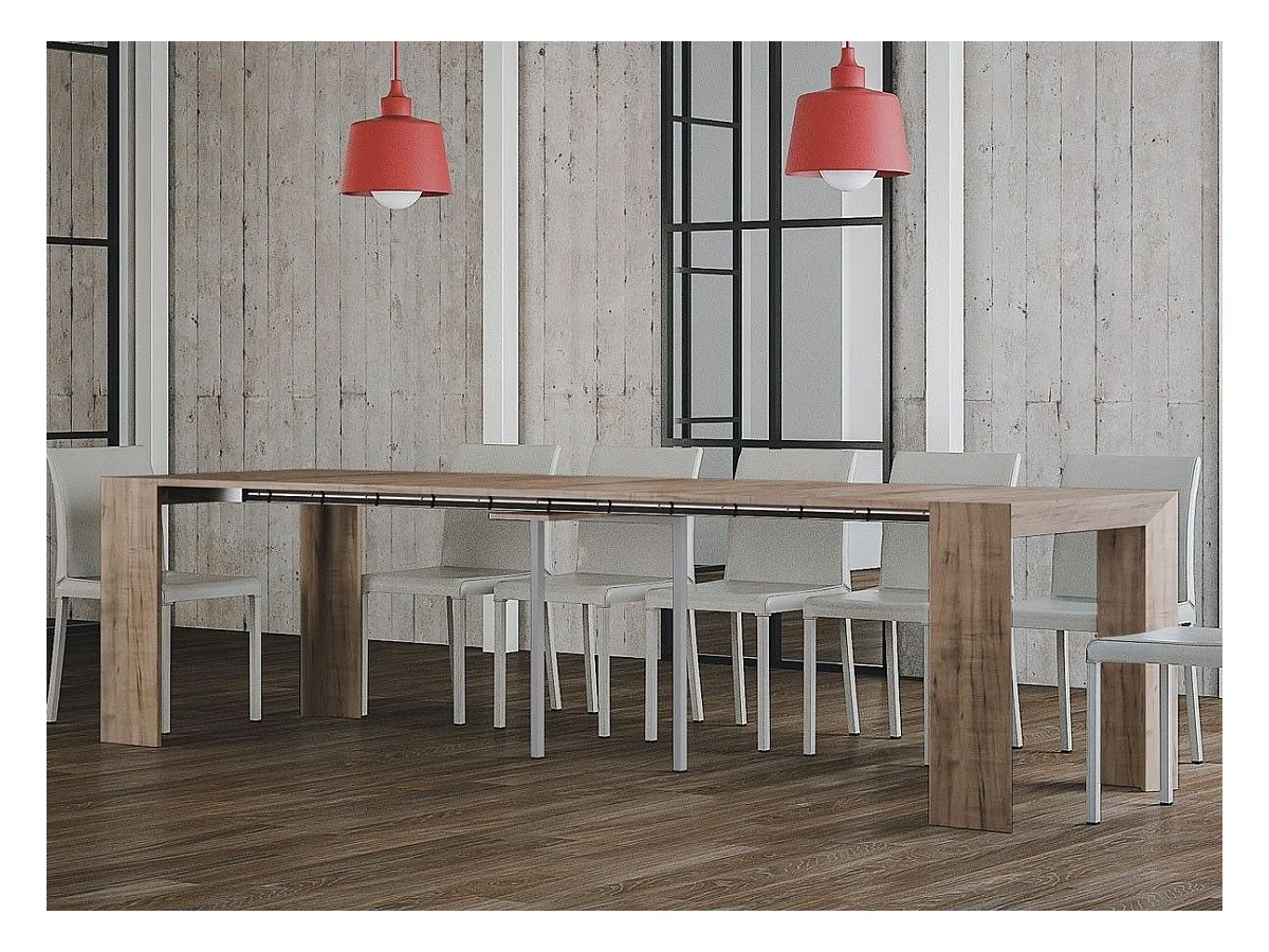 Uitschuifbare naturel eiken melamine console voor 12 personen 45 tot 305 cm Genève