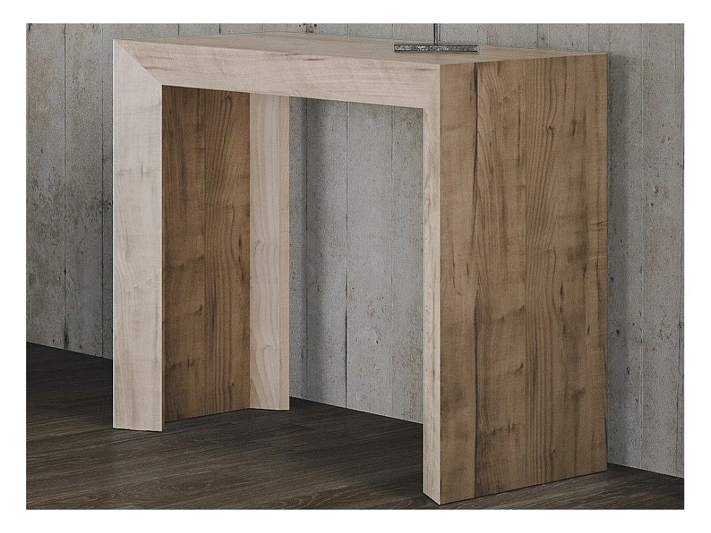 Moderne houten uitschuifbare console 90x40/196 of 90x40/300 cm Naxo-Kleur Natuurlijk-Steun 2 voet-Verlengsnoeren 3 uitbreidingen
