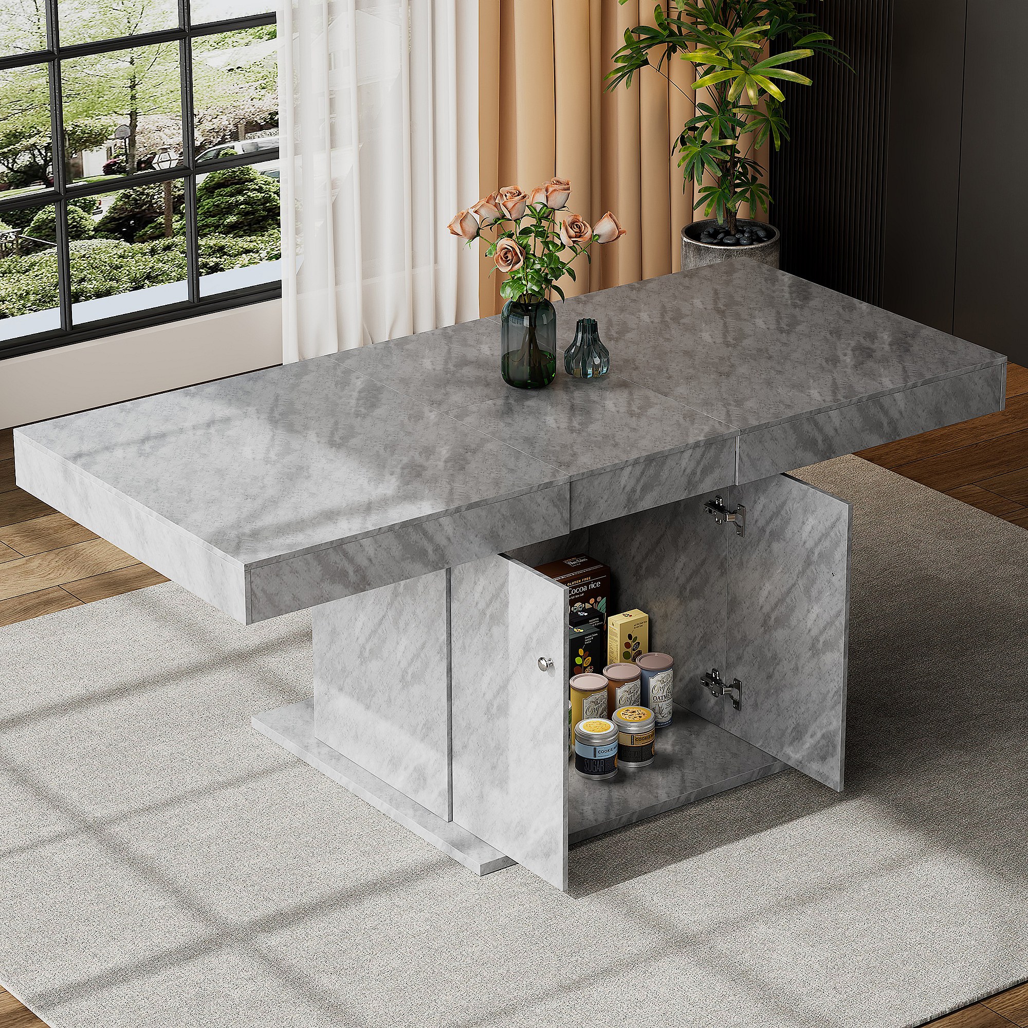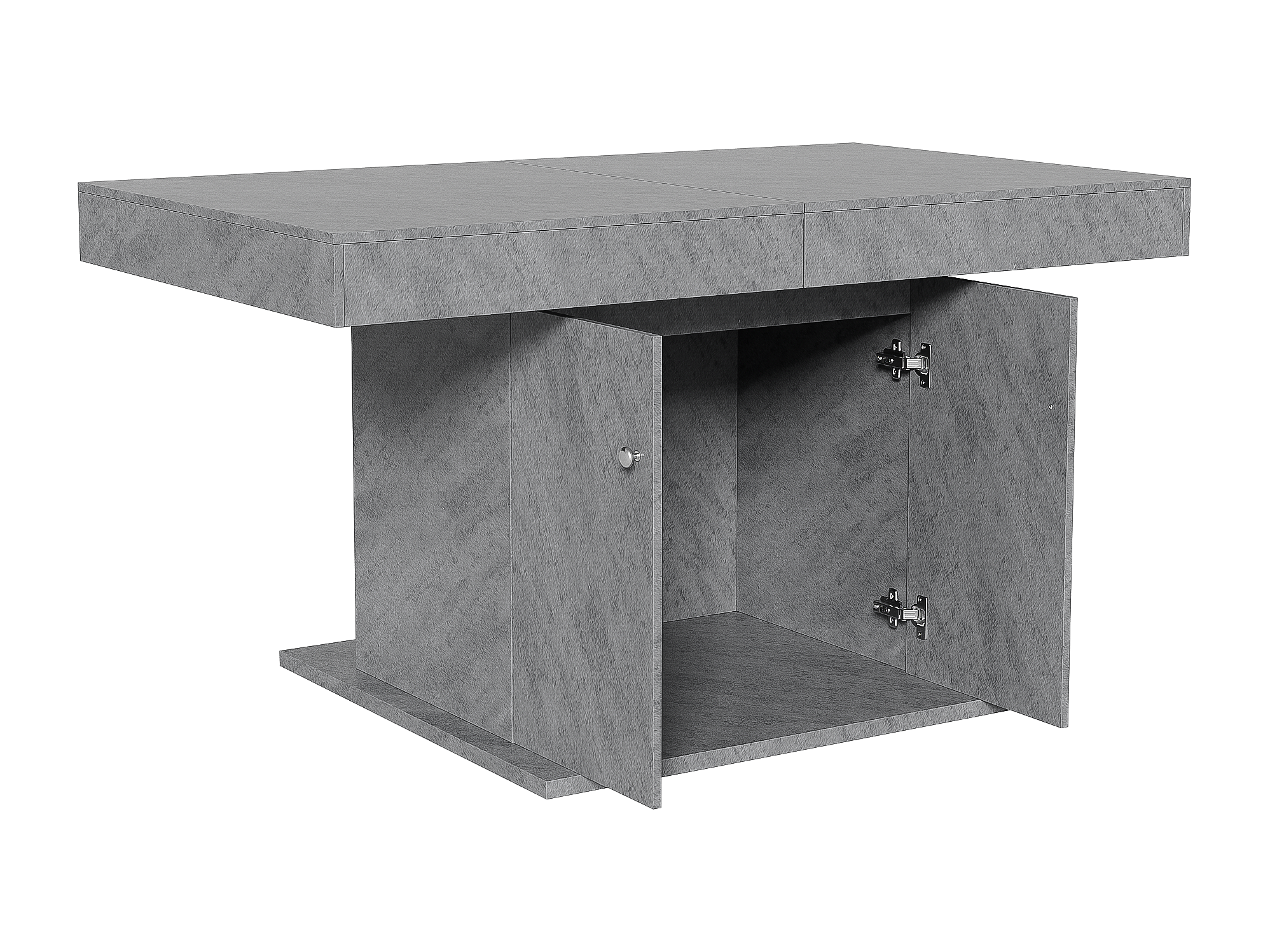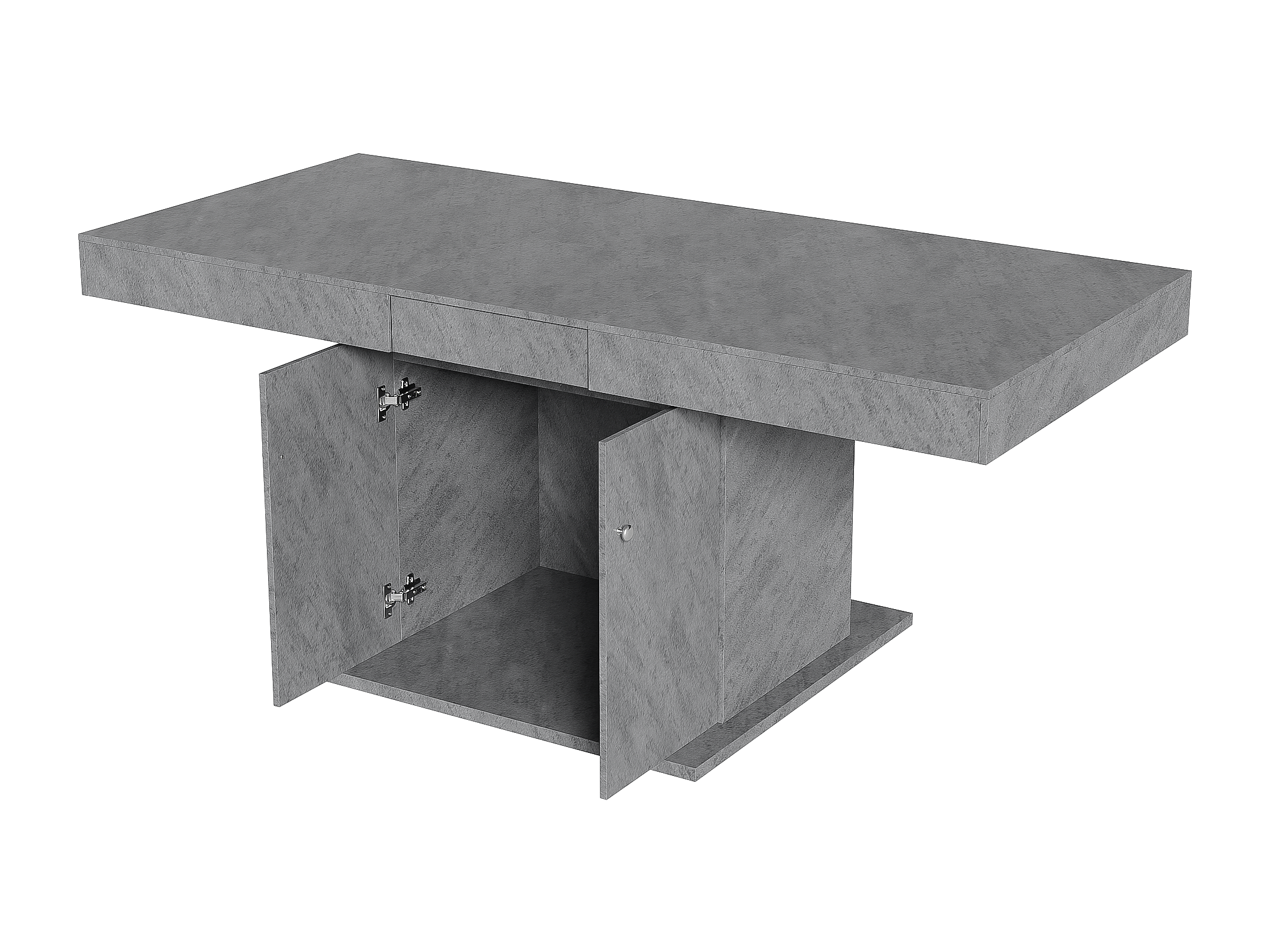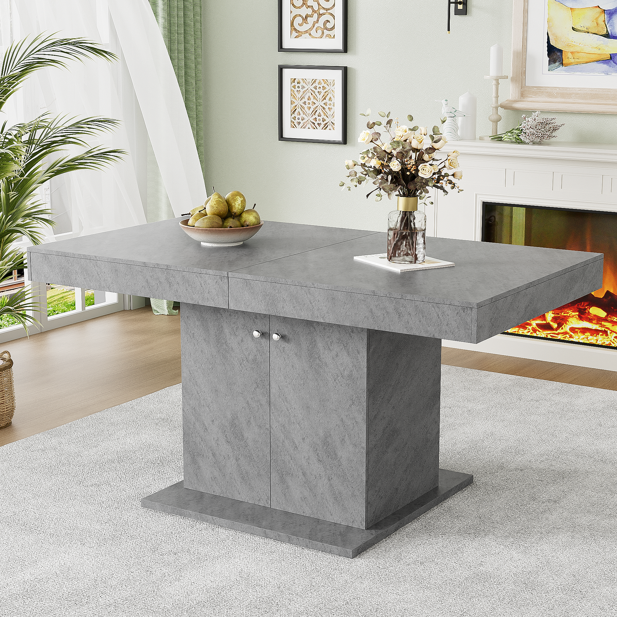 Uitschuifbare rechthoekige eettafel voor 4-6 personen - houten poten met opbergruimte - grijs (140/180x80x76 cm)