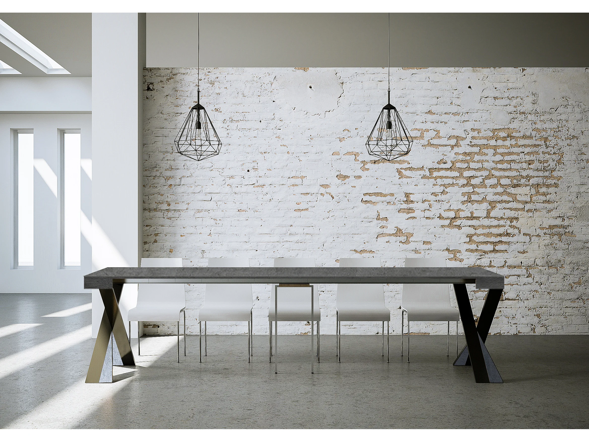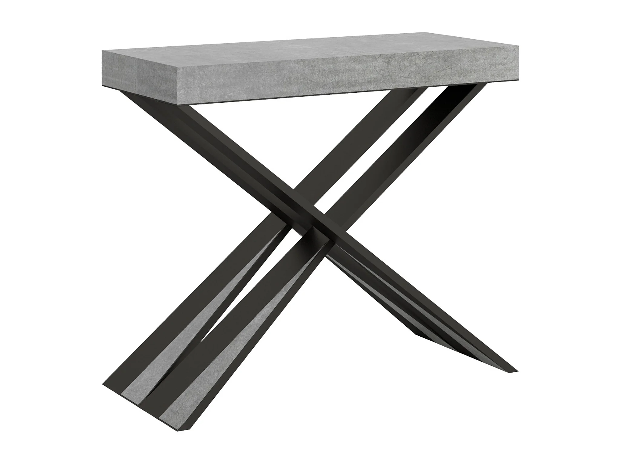 Uitschuifbare sidetable 90x40/300 cm Diago cement met antraciet frame